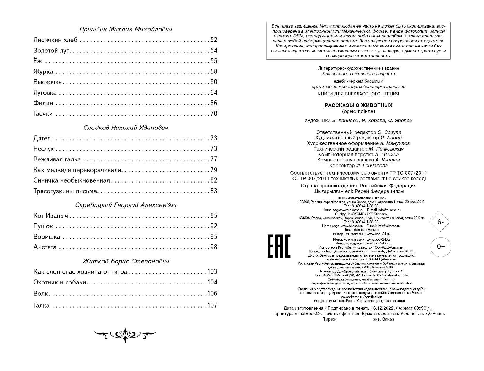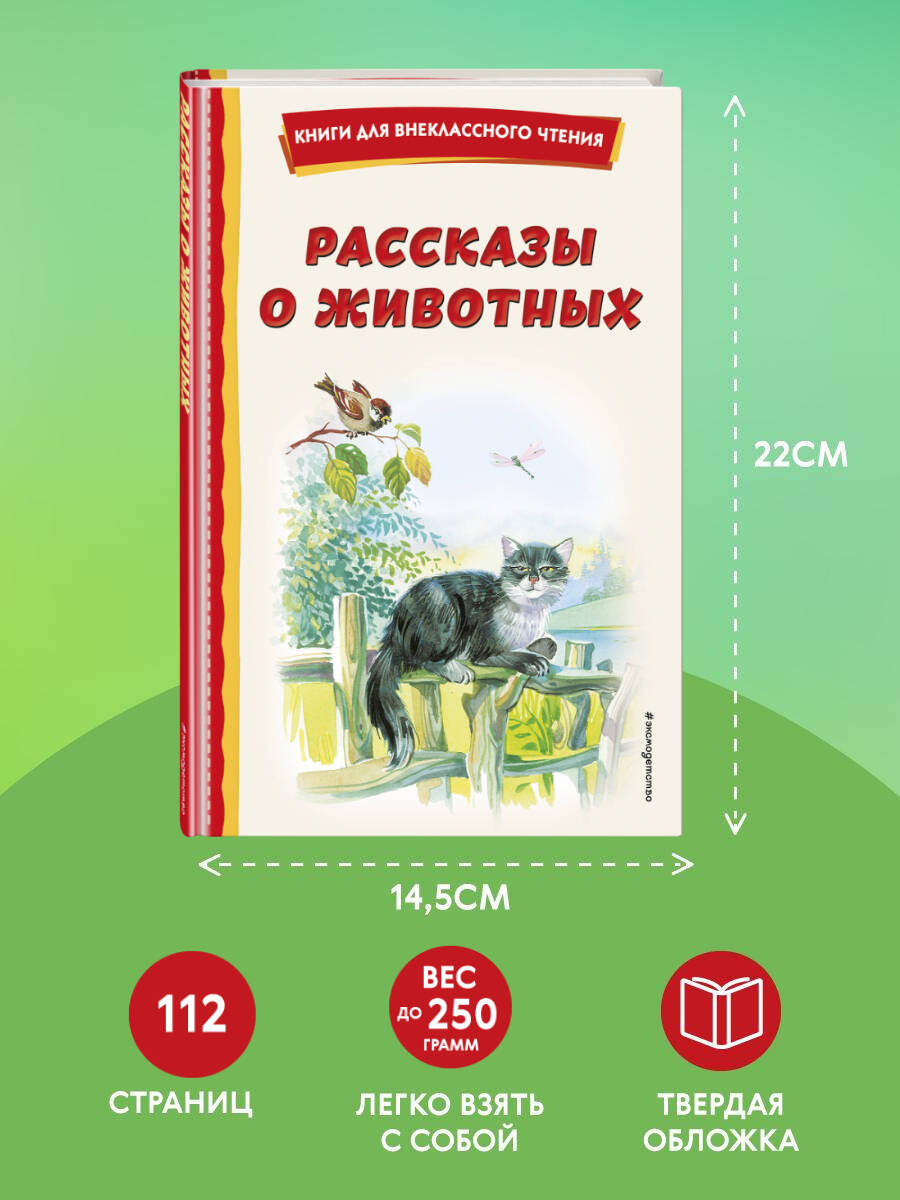 Серия «Книги для внеклассного чтения» - это подборка главных произведений русских и зарубежных авторов, входящих в школьную программу. Лучшие произведения детской литературы с цветными иллюстрациями помогут привить ребёнку любовь к чтению. В этот сборник вошли наиболее известные и любимые детьми рассказы о животных и природе. Порой весёлые, а порой серьёзные истории о жизни братьев наших меньших научат детей сопереживать и помогать животным, бережно относиться к окружающему миру и заботиться о слабых.| Издательство | ООО "Издательство "Эксмо" |