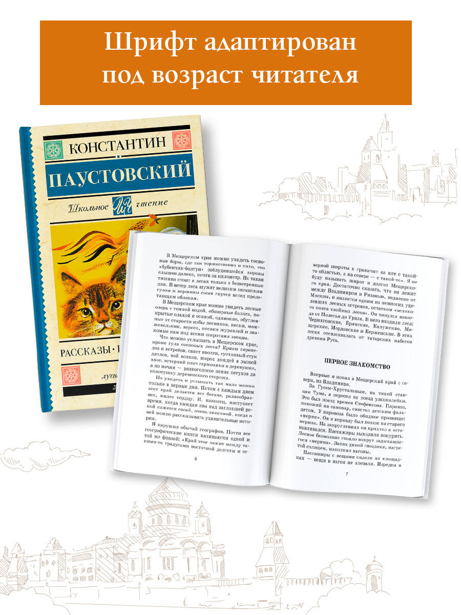 Лучшие произведения Константина Паустовского, знаменитого русского писателя, под одной обложкой! В этот сборник для школьного чтения вошли повесть "Мещёрская сторона", рассказы и сказки разных лет. Эти истории легко читаются, знакомят ребят с лучшей классикой, увлекают с первых страниц. В серию включены лучшие произведения отечественной и зарубежной литературы, входящие в школьную программу с 1 по 11 класс и в списки дошкольного чтения. Книги в твердом переплёте сделают знакомство с литературой легким и увлекательным. Серия, которая не ударит по семейному бюджету и поможет юному читателю расти нравственно и интеллектуально!