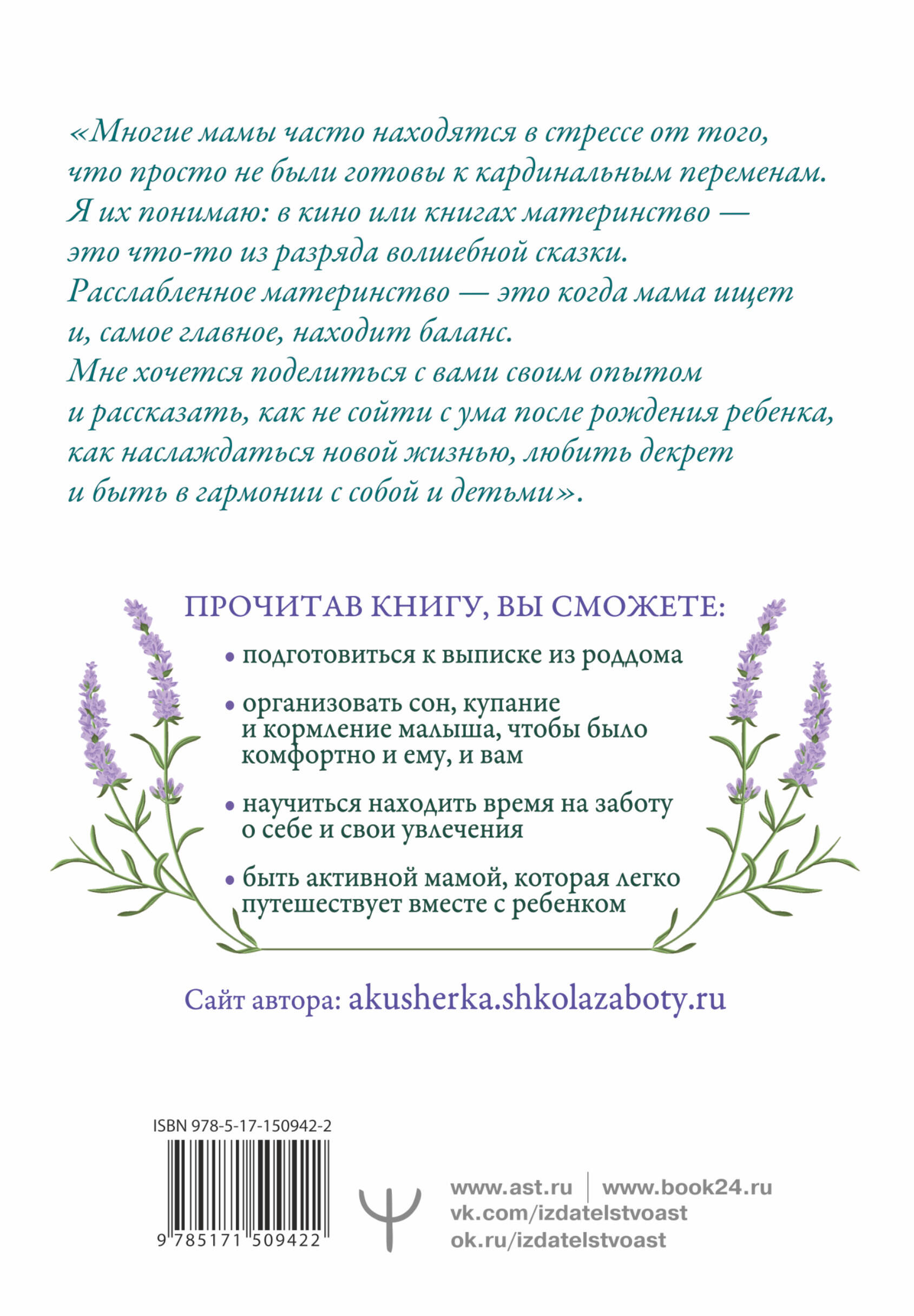 Ты так долго ждала - и вот он рядом, такой маленький и беззащитный. Что делать теперь? Как позаботиться о малыше и о себе? Как сохранить баланс в жизни после рождения ребенка? Все ответы - в этой книге для мам от медика с 15-летним стажем и мамы двоих детей Джамили Аккерман! Ты сможешь: • подготовиться к выписке из роддома; • организовать сон, купание и кормление малыша, чтобы было комфортно и ему, и тебе; • научиться находить время на заботу о себе и свои увлечения; • быть активной мамой, которая легко путешествует вместе с ребенком. Автор предлагает свой подход - расслабленное материнство. Ты узнаешь, как сохранить гармонию после появления малыша, чтобы быть лучшей мамой и счастливой женщиной!| Издательство | ИЗДАТЕЛЬСТВО "АСТ" |