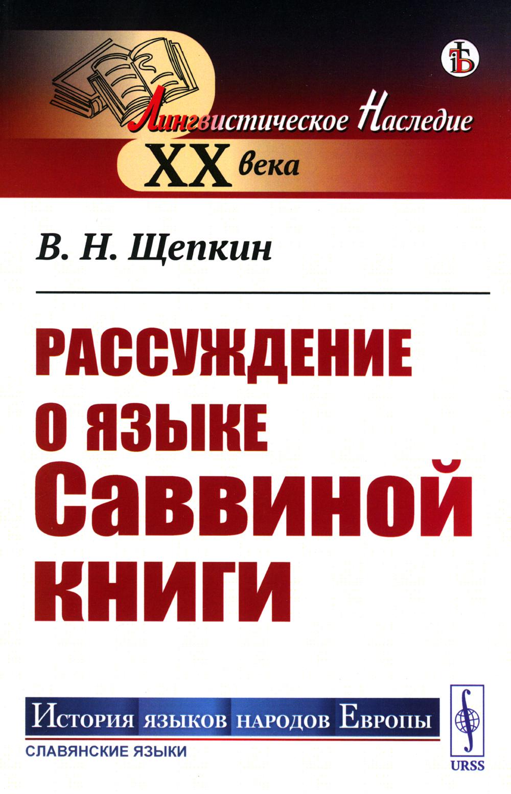 Читателю предлагается одно из фундаментальных исследований в области славянского сравнительно-исторического языкознания - «Рассуждение о языке Саввиной книги». Саввина книга - это древнеболгарская рукопись евангельских чтений XI в., единственная сохранившаяся кирилловская рукопись старославянского Евангелия. Ее исследование принадлежит выдающемуся слависту начала XX века, представителю московской лингвистической школы В. Н. Щепкину. В этой работе была предложена классификация старославянских памятников письменности, вошедшая с тех пор во все учебники старославянского языка. Основное внимание в книге уделено истории редуцированных и носовых гласных. Описывая язык Саввиной книги, В. Н. Щепкин привлекал для анализа богатый сравнительный материал, пользуясь данными диалектологии. К работе прилагаются два фототипических снимка Саввиной книги. Книга рекомендуется историкам языка и, в первую очередь, специалистам по истории славянских языков, болгаристам, студентам-славистам, а также всем, кто интересуется принципами и методами сравнительно-исторического языкознания.