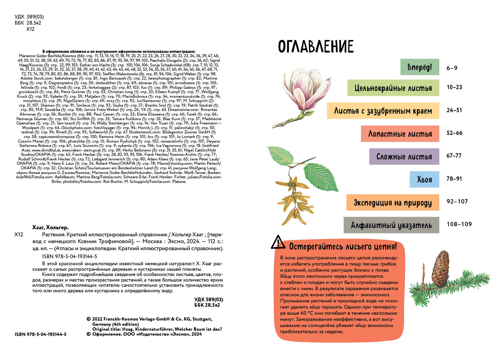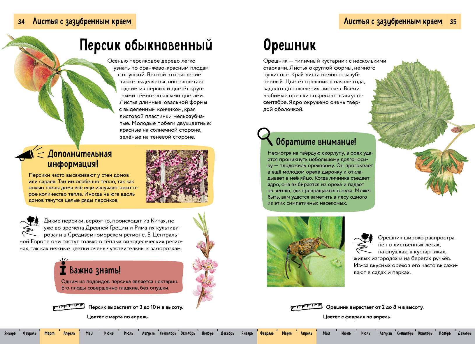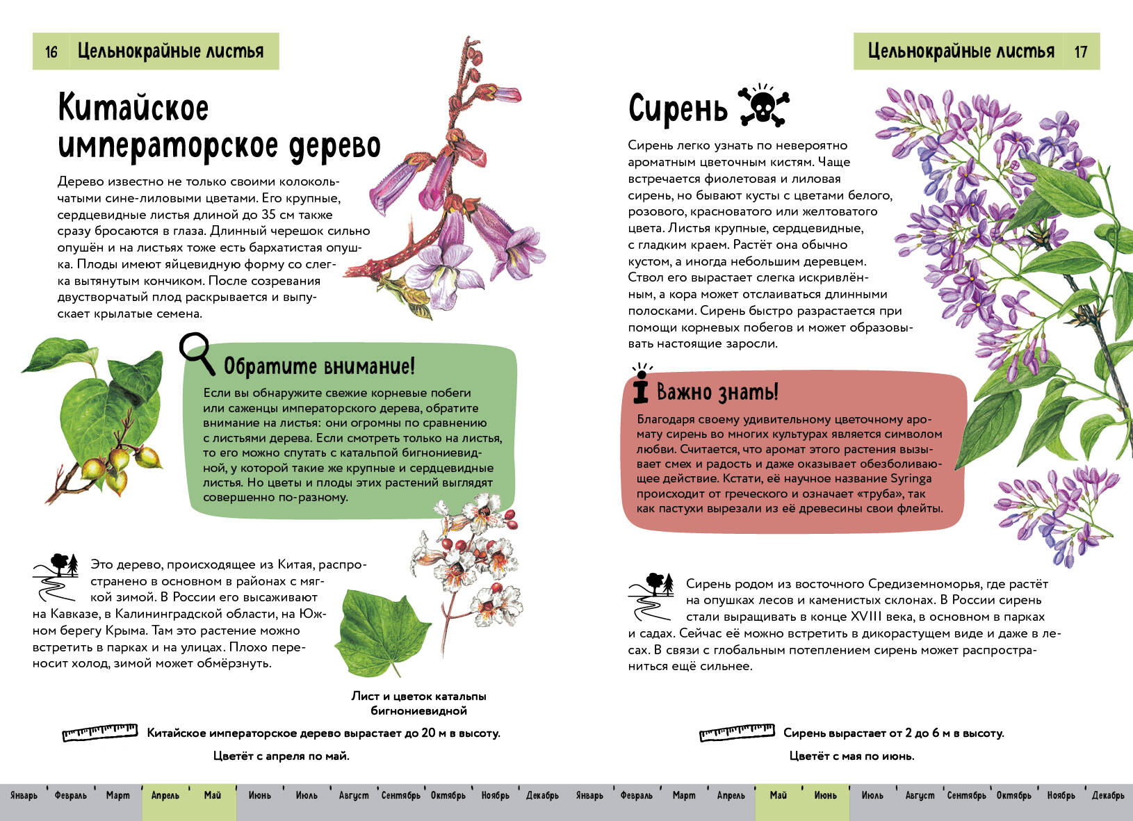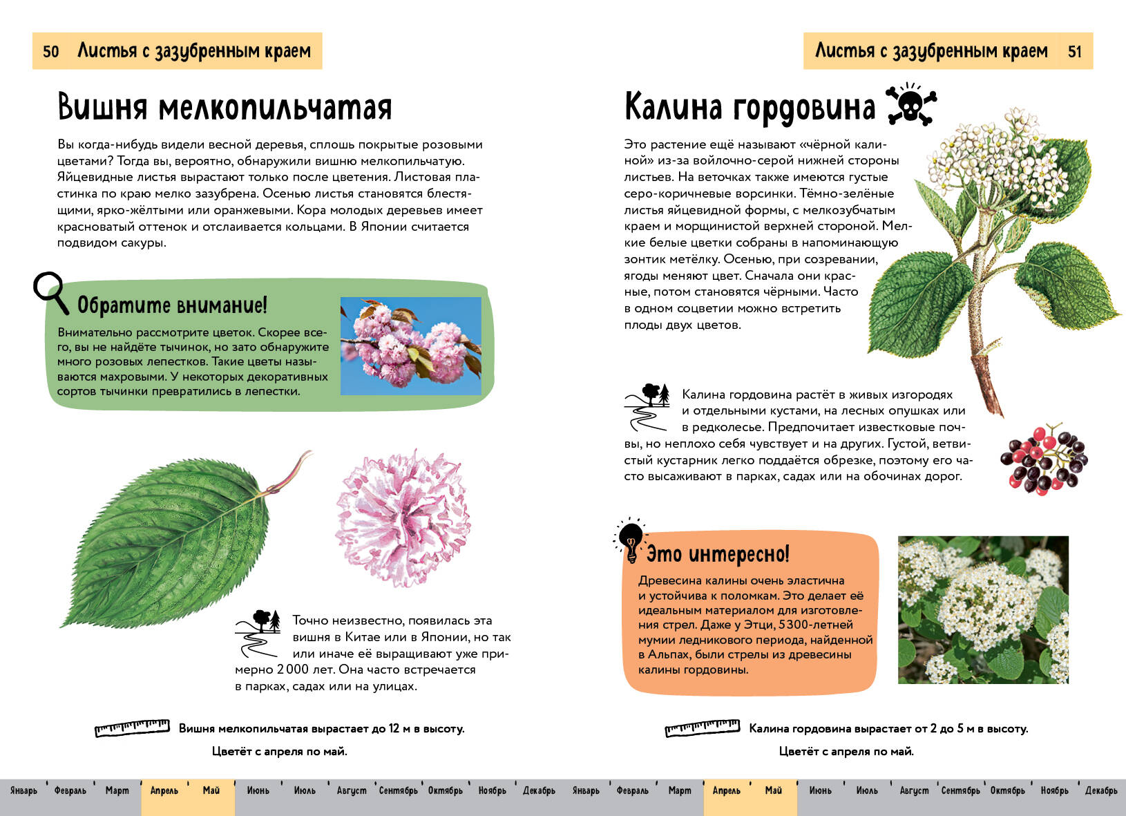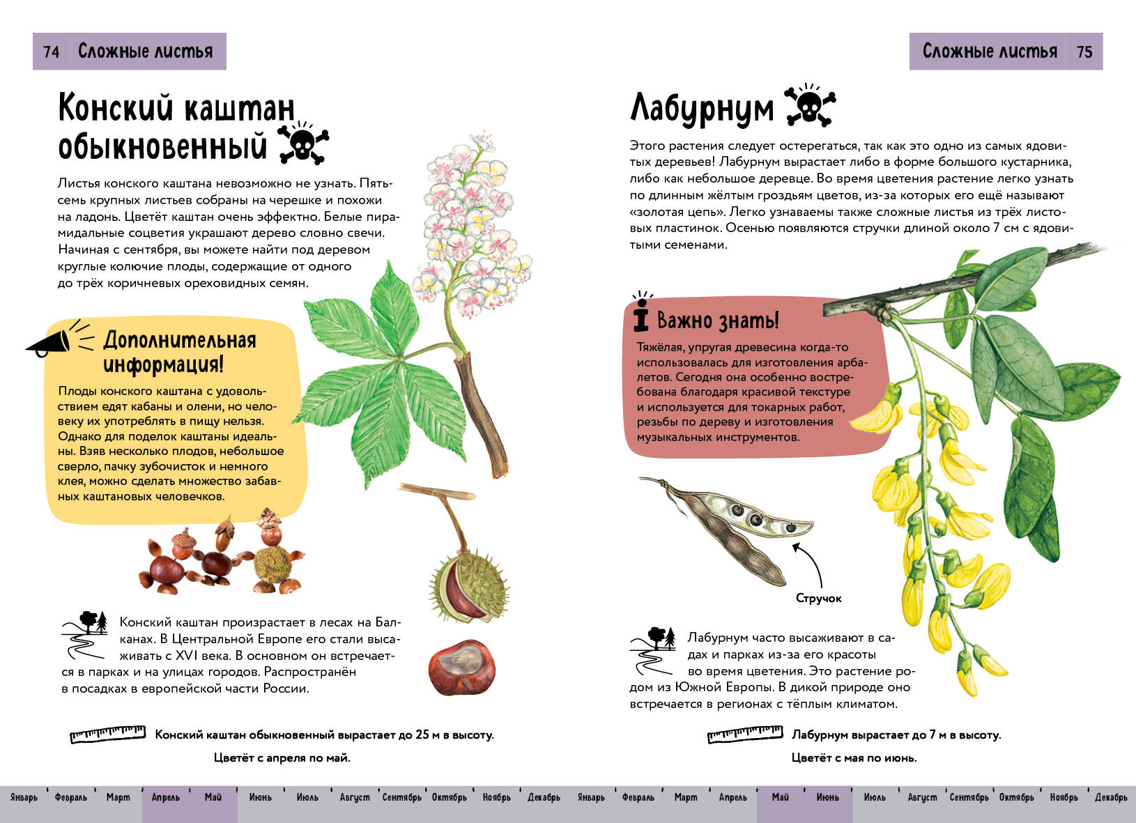 Уникальная энциклопедия для тех, кому интересен мир растений! Этот справочник-определитель содержит подробнейшие сведения о более чем 80 видах самых распространённых деревьев и кустарников нашей планеты: места произрастания, особенности листьев и плодов, периоды цветения, способы распространения, применение в медицине, ландшафтном дизайне, кулинарии, а также много интересных фактов из истории появления и культивирования деревьев и кустарников в нашей стране и по всему миру. Удобная группировка по форме листьев и система символов, разработанная специально для этой книги, помогут читателю самостоятельно и безошибочно установить принадлежность дерева или кустарника к определённому виду. Энциклопедия украшена яркими ботаническими иллюстрациями и профессиональными фотографиями, которые позволяют разглядеть форму, цвета и детали растений. Удобный формат справочника позволит брать его на прогулку и в поход, а красочное оформление и плотная мелованная бумага делают энциклопедию замечательным подарком по любому поводу как юным, так и взрослым любителям растений!| Издательство | ООО "Издательство "Эксмо" |