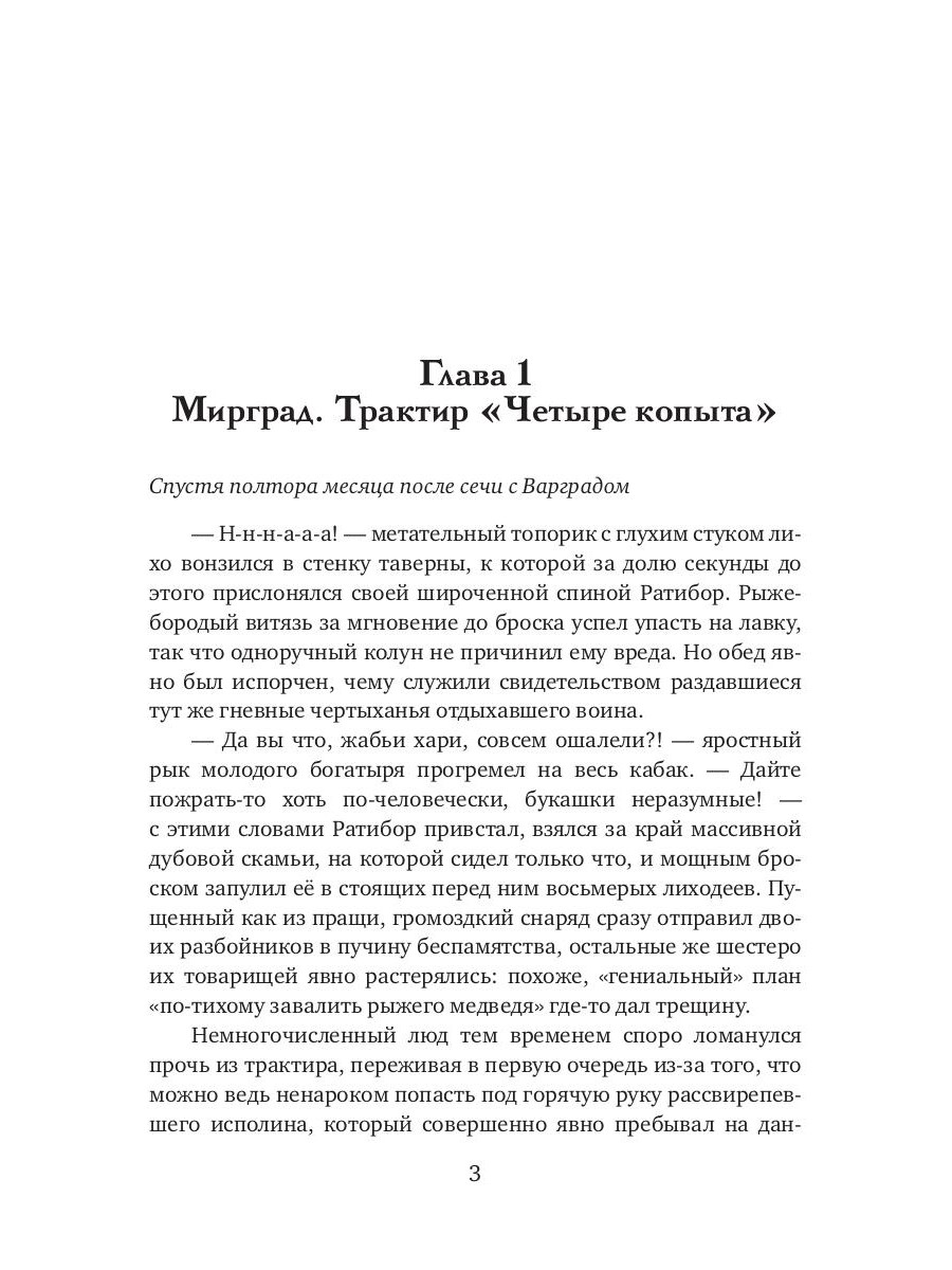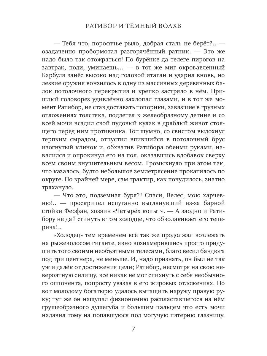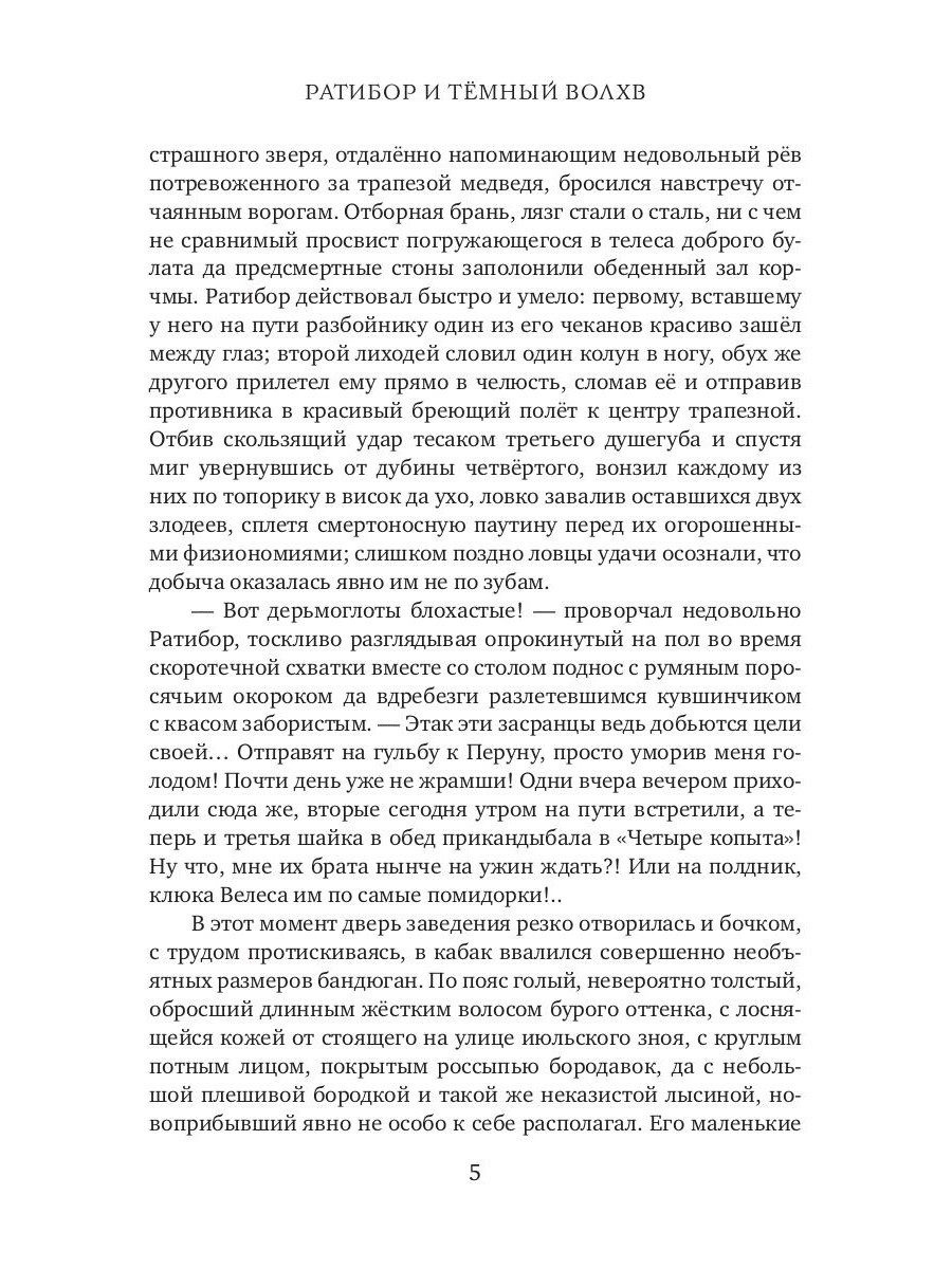 Всего ничего времени минуло с лютой сечи волка и медведя, а у Ратибора уж дел невпроворот: умаяли его порядком гости нежданные, что повадились регулярно хаживать к славному витязю с намерениями недобрыми. И по одному, и целыми ватагами заявляются за головой рыжебородого богатыря лиходеи пошиба разного, а тут ещё из Проклятой долины завывания жуткие на всю округу разносятся да люди пропадать недалече стали от сего места зловещего. И кого же отправит князь Святослав выяснить, что за напасть неведомая пожаловала в те земли сумрачные? О новых приключениях могучего великана читайте в пятой части сказания о Ратиборе из племени русов.| Издательство | Т8 RUGRAM |