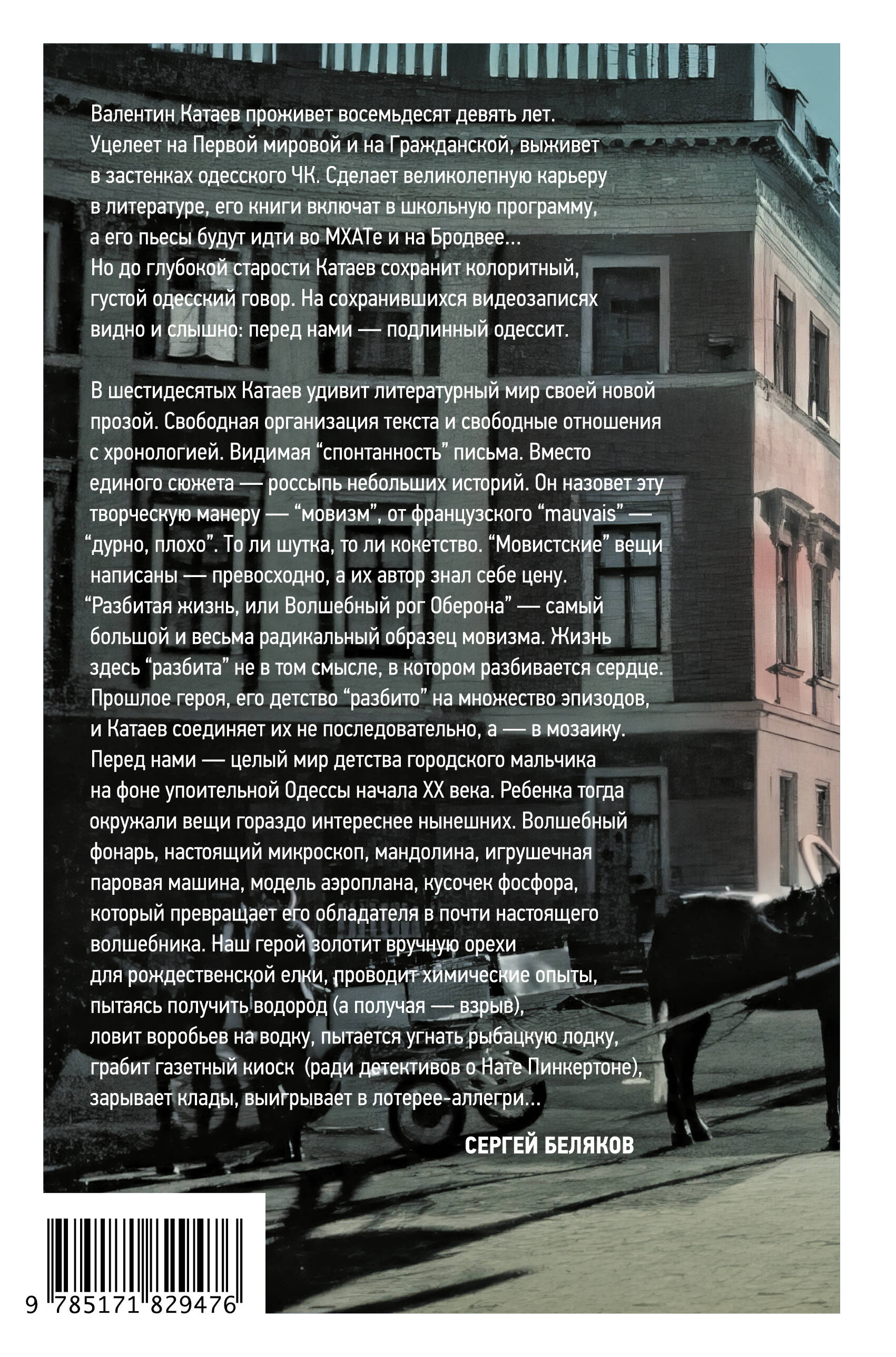 - Экспериментальная автобиография Валентина Катаева, построенная как серия фрагментов-воспоминаний из детства и юности, которые складываются в цельную картину жизни в Одессе начала XX века. - Произведение известно как пример позднего «мовизма» Катаева - литературного способа, где вместо единого сюжета читатель получает «мозаику» самостоятельных эпизодов и новелл, объединенных общей темой. - В книге чутко отражены детские впечатления, переживания, отношения с семьей и окружением, а также способы познания мира через простые, но яркие события и мелочи повседневной жизни. - Валентин Петрович Катаев (1897-1986) - русский советский писатель, драматург, поэт, автор прозы и пьес; прошел Первую мировую и Гражданскую войны, был дважды ранен. Его наиболее известные произведения - «Белеет парус одинокий» и «Сын полка» - вошли в школьную программу, а пьесы ставились на Бродвее. Брат писателя Е. П. Петрова (соавтора «12 стульев»).| Издательство | Издательство "АСТ" |