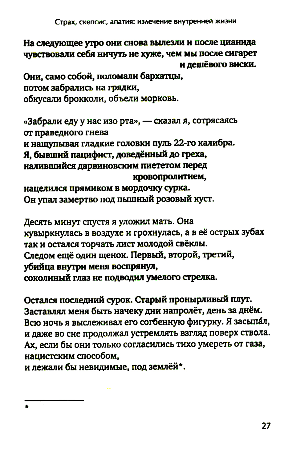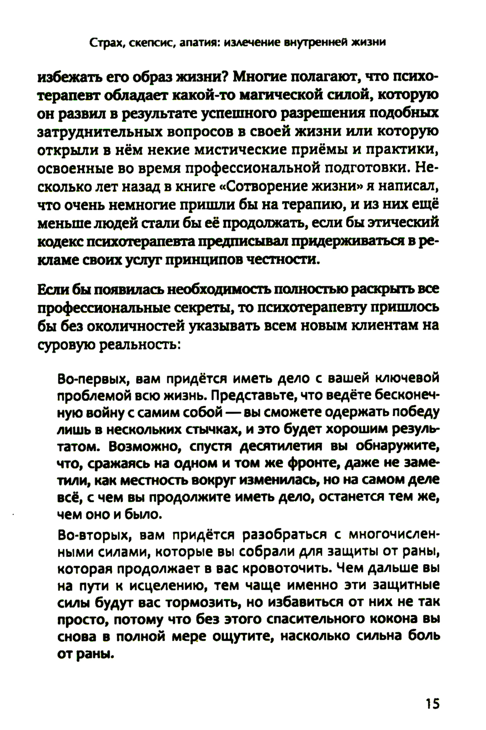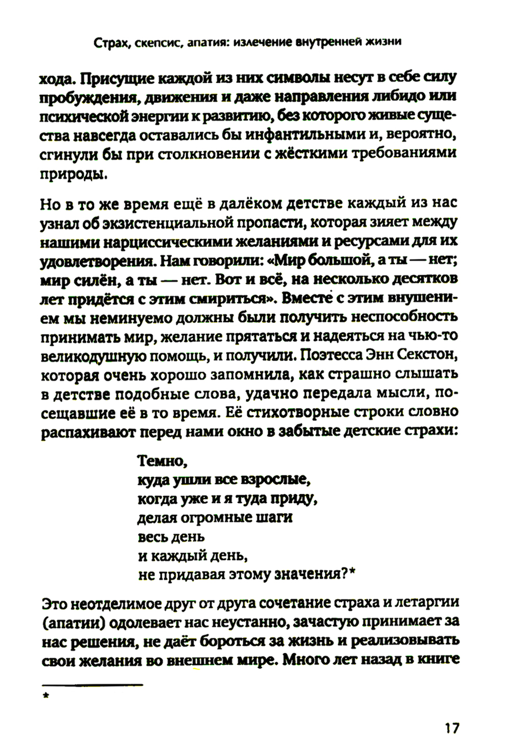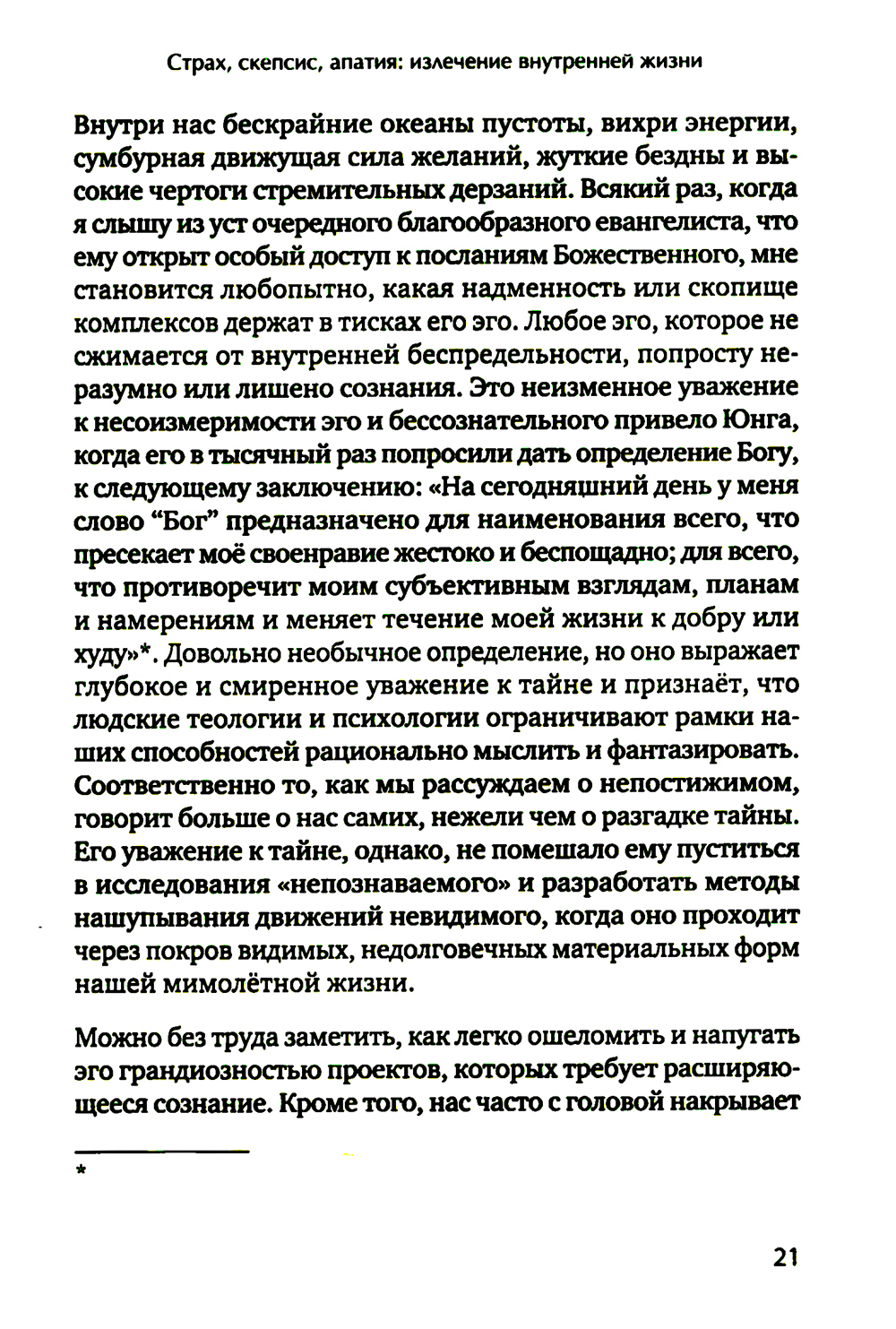 Выдающийся юнгианский аналитик исследует необходимость глубокою познания себя и многочисленные препятствия, стоящие на этом пути. Каждая глава иллюстрирует такие внутренние препятствия, например, запугивание себя масштабом проблемы, готовность избегать тяжёлой работы и грызущая неуверенность в себе, и также предоставляет инструменты для укренления сознания, необходимые для преодоления этих препятствий.| Издательство | Питер |