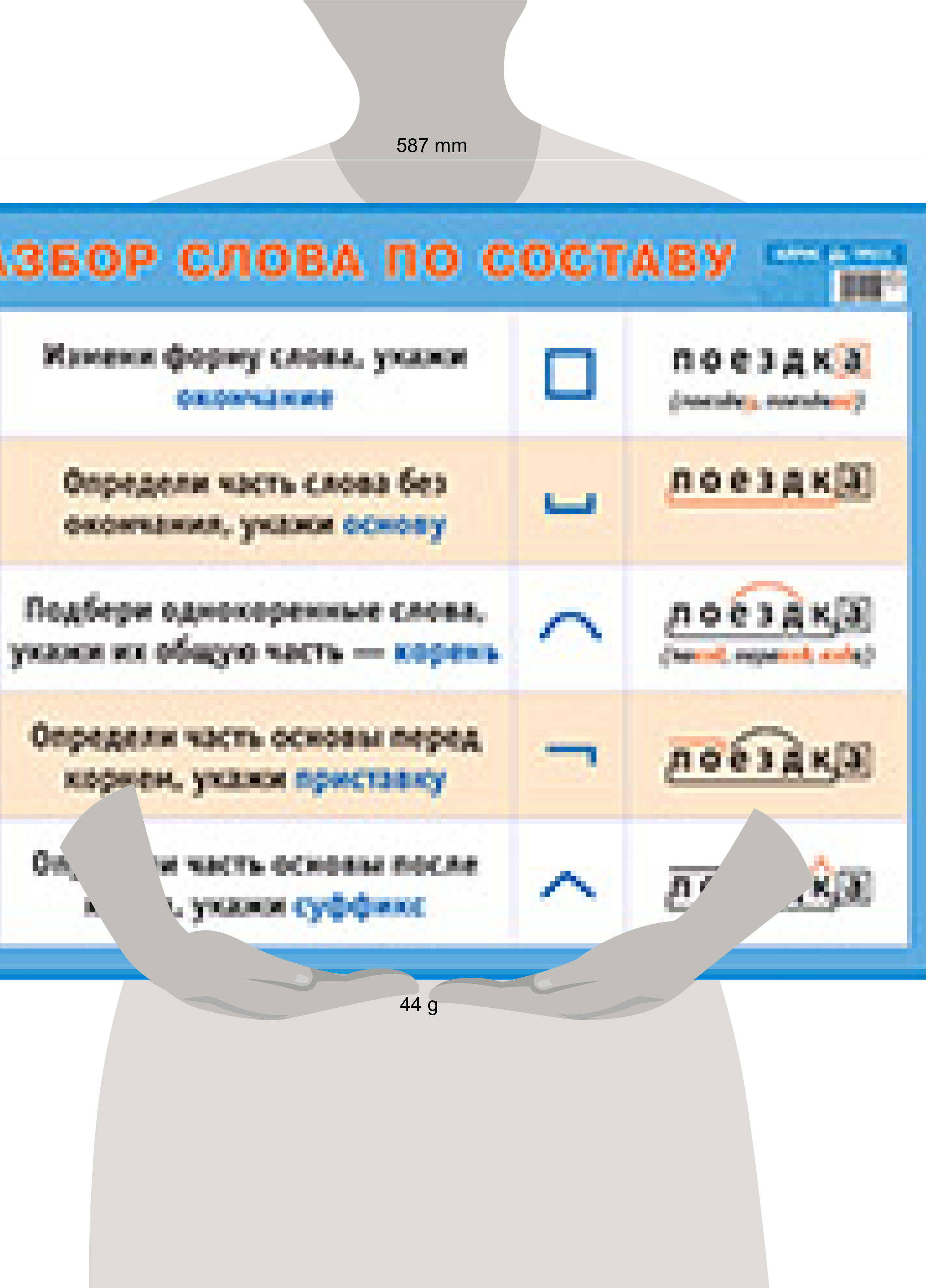 На красочно оформленном плакате в доступной форме представлен алгоритм разбора слова по составу. Предлагаемый плакат является самостоятельной частью Комплекта наглядных пособий по русскому языку для начальной школы. Это пособие универсально и может быть использовано как необходимое дополнение ко всем существующим сегодня курсам русского языка в начальной ступени образования.| Издательство | Айрис-пресс Издательство ООО |