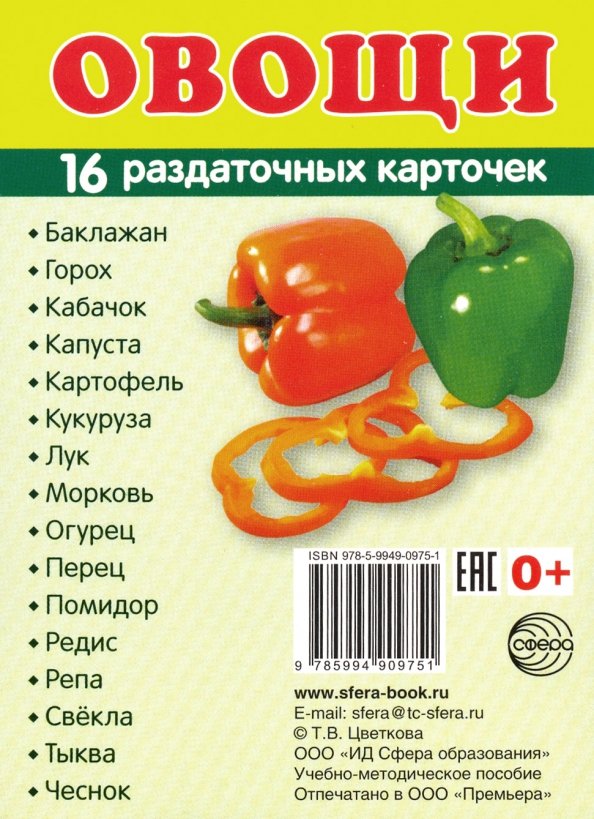 Аннотация: Раздаточные карточки "Овощи" (63х87 мм)