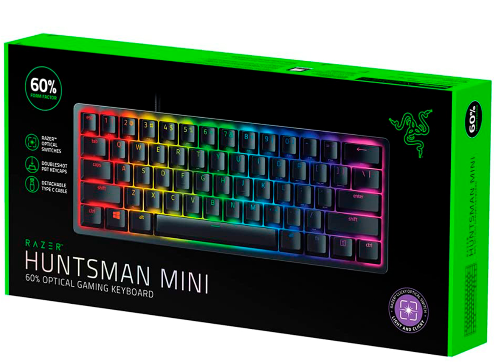 <p>Линейные оптические переключатели Razer (красные): эти переключатели используют световое срабатывание, что обеспечивает сверхбыстрое время отклика.<br>Сила срабатывания: 45 грамм<br>Точка срабатывания: 1,2 мм<br>Общее расстояние хода: 3,5 мм<br>Долговечность: рассчитана на 100 миллионов нажатий клавиш<br>Компактный форм-фактор 60%: устраняет функциональный ряд, домашний кластер и цифровую клавиатуру, которые есть в традиционных полноразмерных клавиатурах, обеспечивая минималистичный дизайн без ущерба для основных функций.<br>Колпачки клавиш Doubleshot PBT: обеспечивают большую долговечность и высококачественную текстурированную отделку, которая устойчива к износу, с нанесенными сбоку дополнительными функциями для удобства использования.<br>Подсветка Razer Chroma RGB: предлагает 16,8 миллионов настраиваемых вариантов цветов, что позволяет создавать индивидуальный дизайн и захватывающие игровые ощущения.<br>Отсоединяемый кабель USB-C: облегчает настройку и портативность, что делает ее удобной для геймеров, которые находятся в пути.</p>
