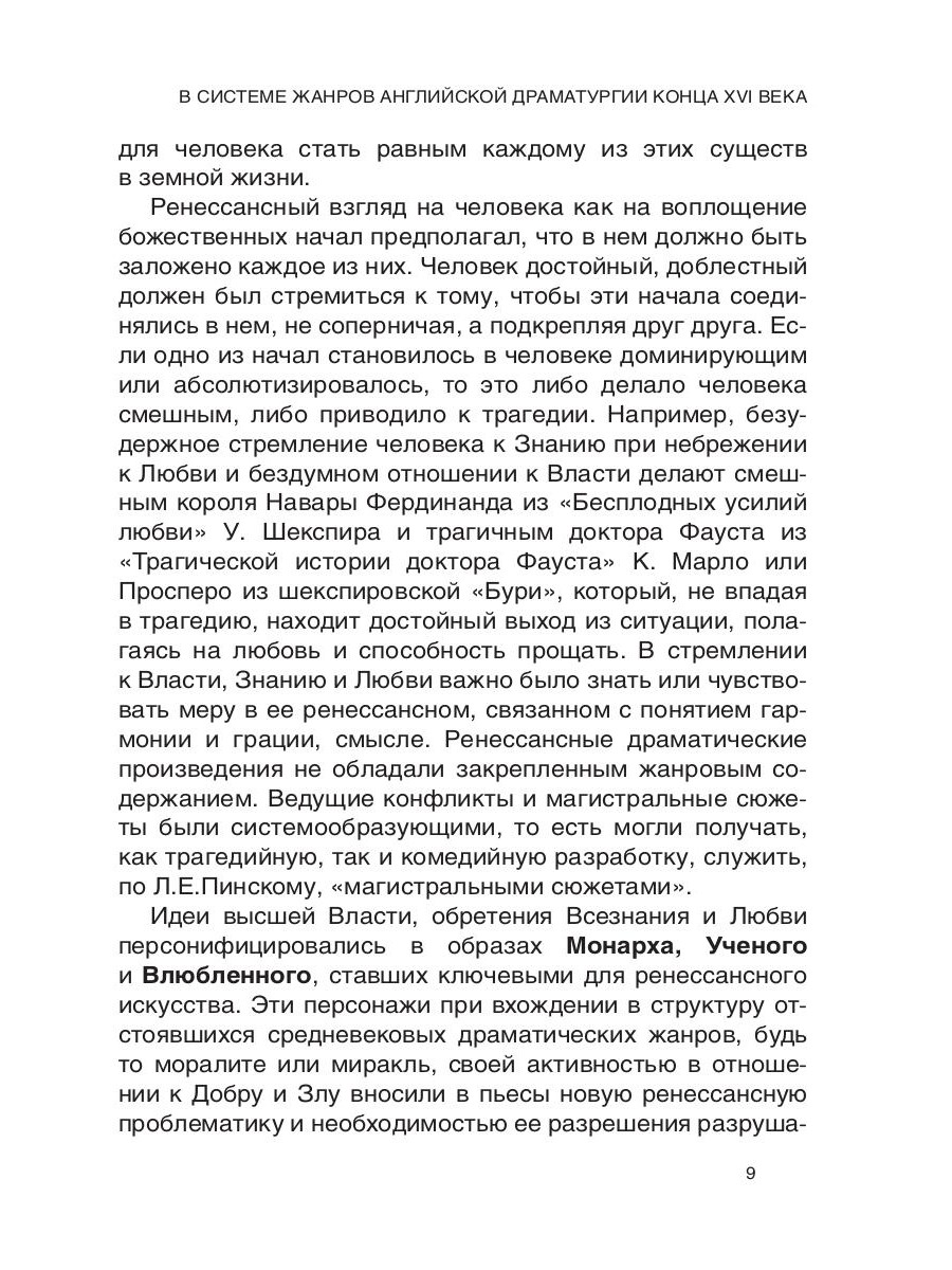 Работа посвящена исследованию одного из самых плодотворных и значимых этапов развития английской драматургии, оказавшего большое влияние на развитие литературы последующих эпох. В поле зрения входит творчество ближайших предшественников и современников Шекспира - Кристофера Марло, Джона Лили, Джорджа Пиля, Роберта Грина, Томаса Кида и Томаса Нэша. Идеи, заложенные в их творчестве, оказались созвучными работам мастеров и итальянского, и Северного Возрождения. Показывается логика смены средневековой системы драматургических жанров на ренессансную. Исследуется ренессансное представление о достоинстве и системообразующий конфликт - испытание человека Властью, Знанием и Любовью. Каждое из испытаний рассматривается как самостоятельный магистральный сюжет, представленный персонажами Монарха, Ученого, Влюбленного, а также взаимодействие означенных конфликтов и магистральных сюжетов в пределах одного драматургического текста, определяющее их жанровую особенность.| Издательство | Рипол Классик |