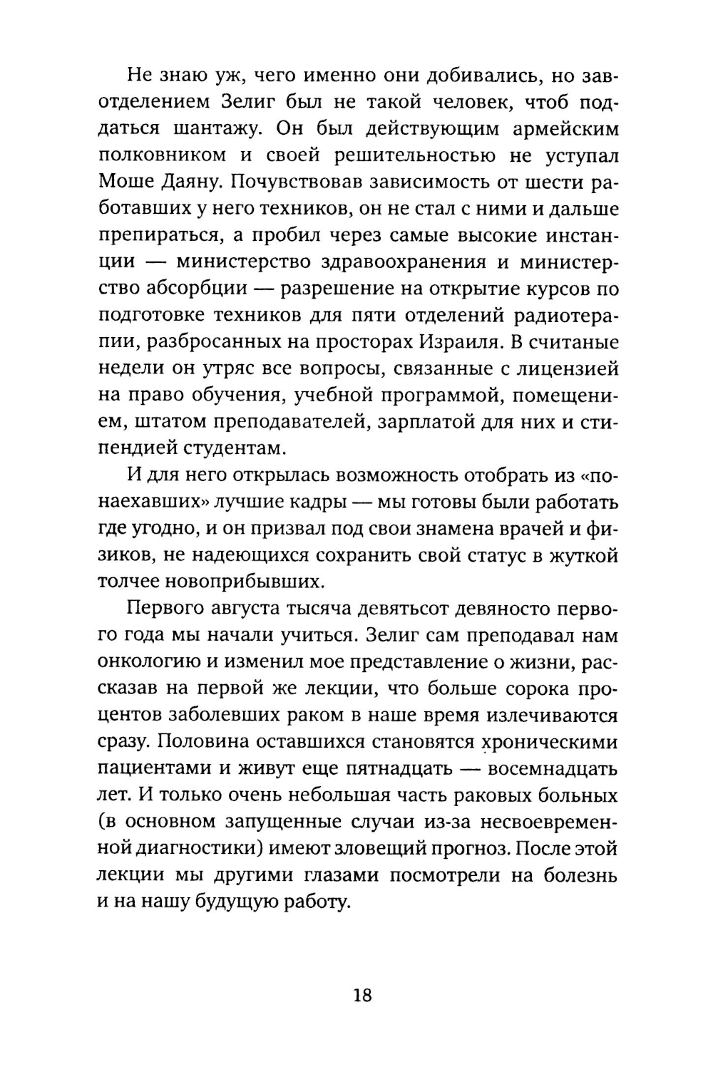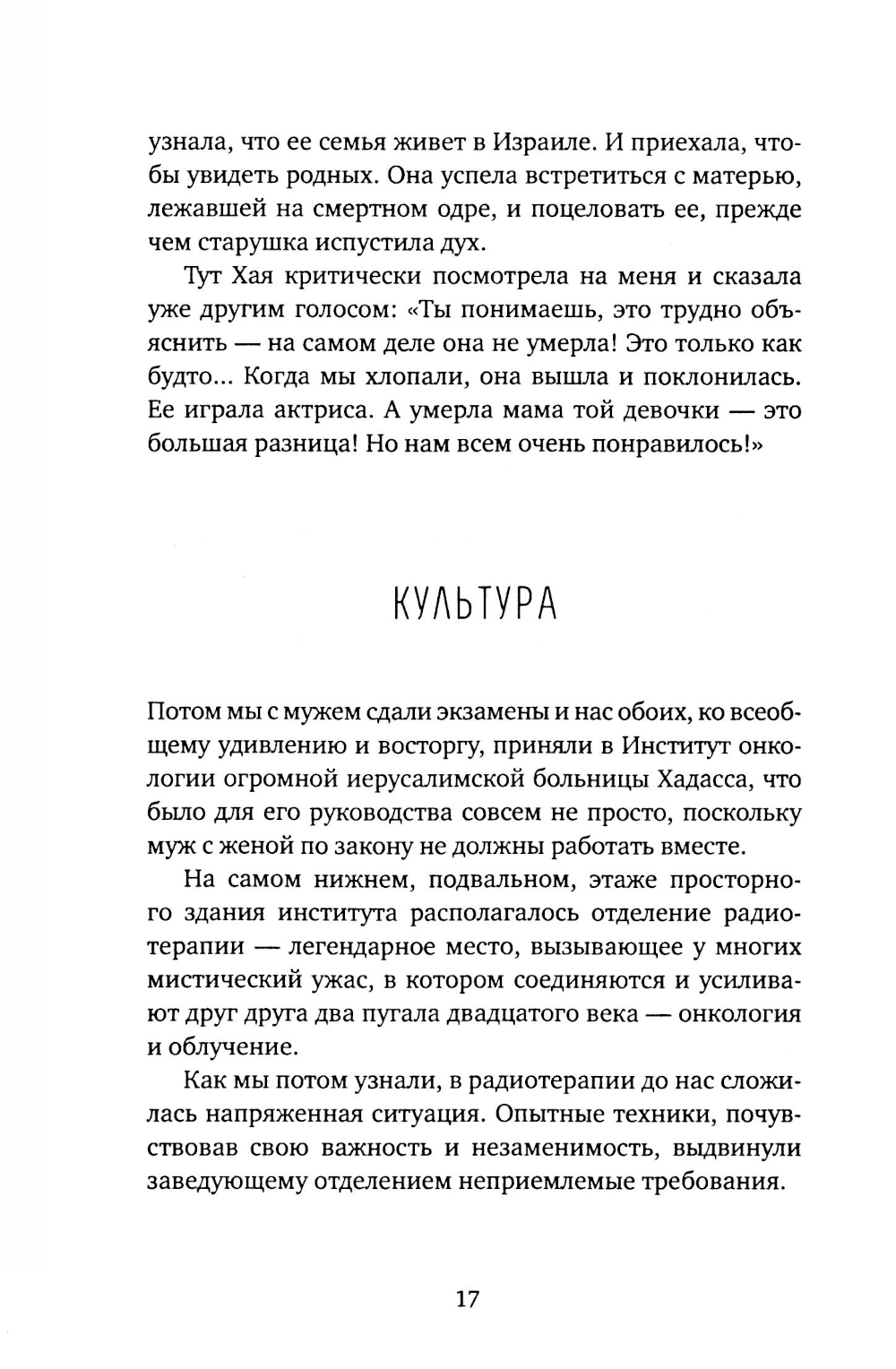 Героиня этой книги оказалась медицинским работником совершенно неожиданно для самой себя. Переехав в Израиль, она, физик по специальности, пройдя специальный курс обучения, получила работу в радиационном отделении Онкологического института в Иерусалимском медицинском центре. Его сотрудники и пациенты живут теми же заботами, что и обычные люди за пределами клиники, только опыт их переживаний гораздо плотнее: выздоровление и смерть, страх и смех, деньги и мудрость, тревога и облегчение, твердость духа и бессилие - все это здесь присутствует ежечасно и ежеминутно и сплетается в единый нервный клубок. Мозаика впечатлений и историй из больничных палат и коридоров и составила «Записки медицинского физика». В книгу вошли также другие рассказы о мужчинах и женщинах, занятых своим делом, своей работой. Их герои живут в разные эпохи и в разных странах, но все они люди, каждый по-своему, особенные, и истории, которые с ними приключаются, никому не покажутся скучными.| Издательство | Время |