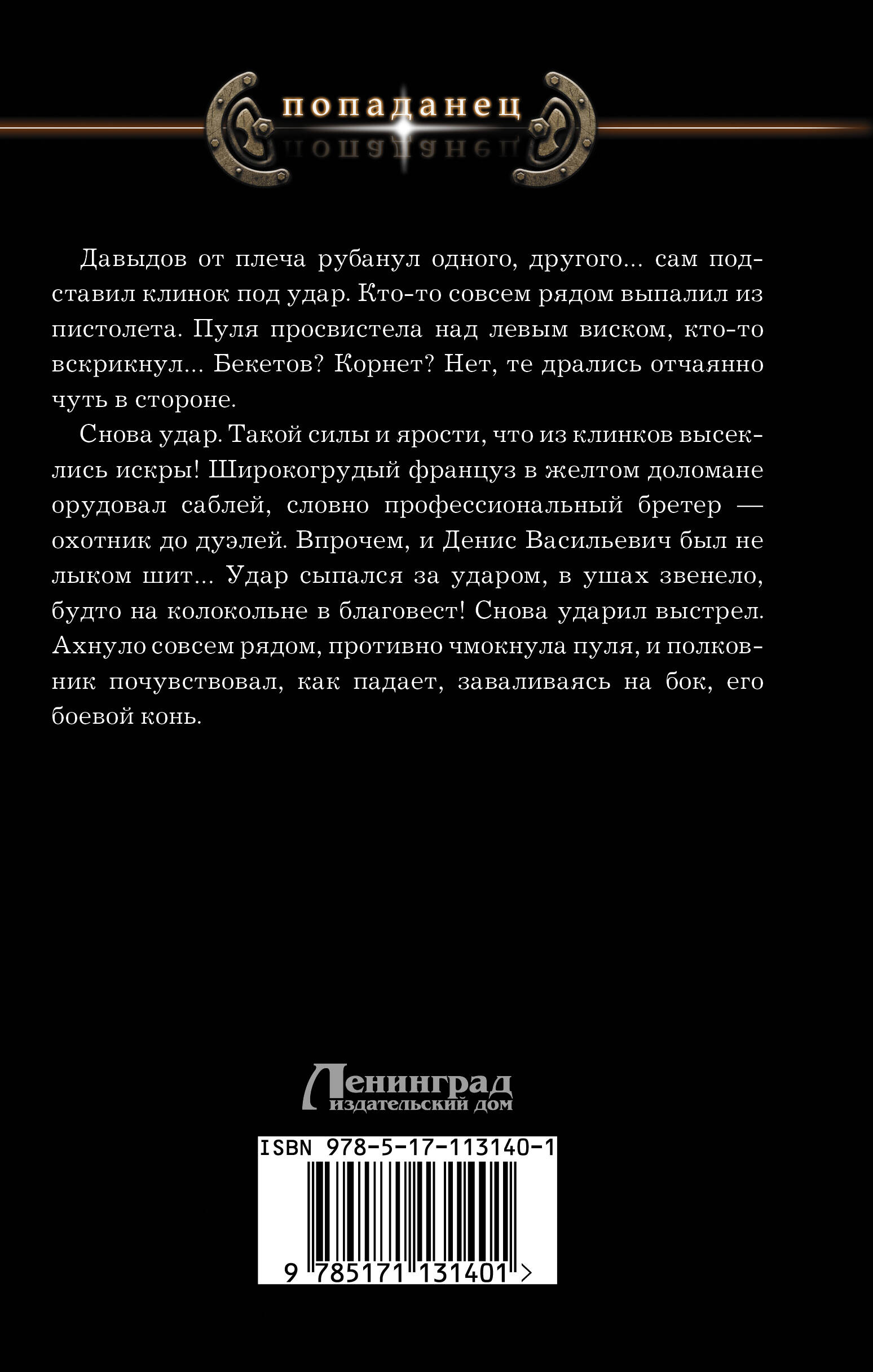 Наш современник по чьей-то злой воле оказался в прошлом, угодив в тело гусара и поэта Дениса Давыдова. Сам Кутузов, главнокомандующий русской армией, благословил полковника Дениса Давыдова на партизанскую войну, придав ему отряд ахтырских гусар и казаков. Засады, лихие налеты ахтырцев, захваты французских обозов, отступающих с богатой добычей по Смоленской дороге… Однако в окружении гусара находятся люди, готовые предать его за деньги, за идею… Или, может быть, из зависти?| Издательство | ИЗДАТЕЛЬСТВО "АСТ" |