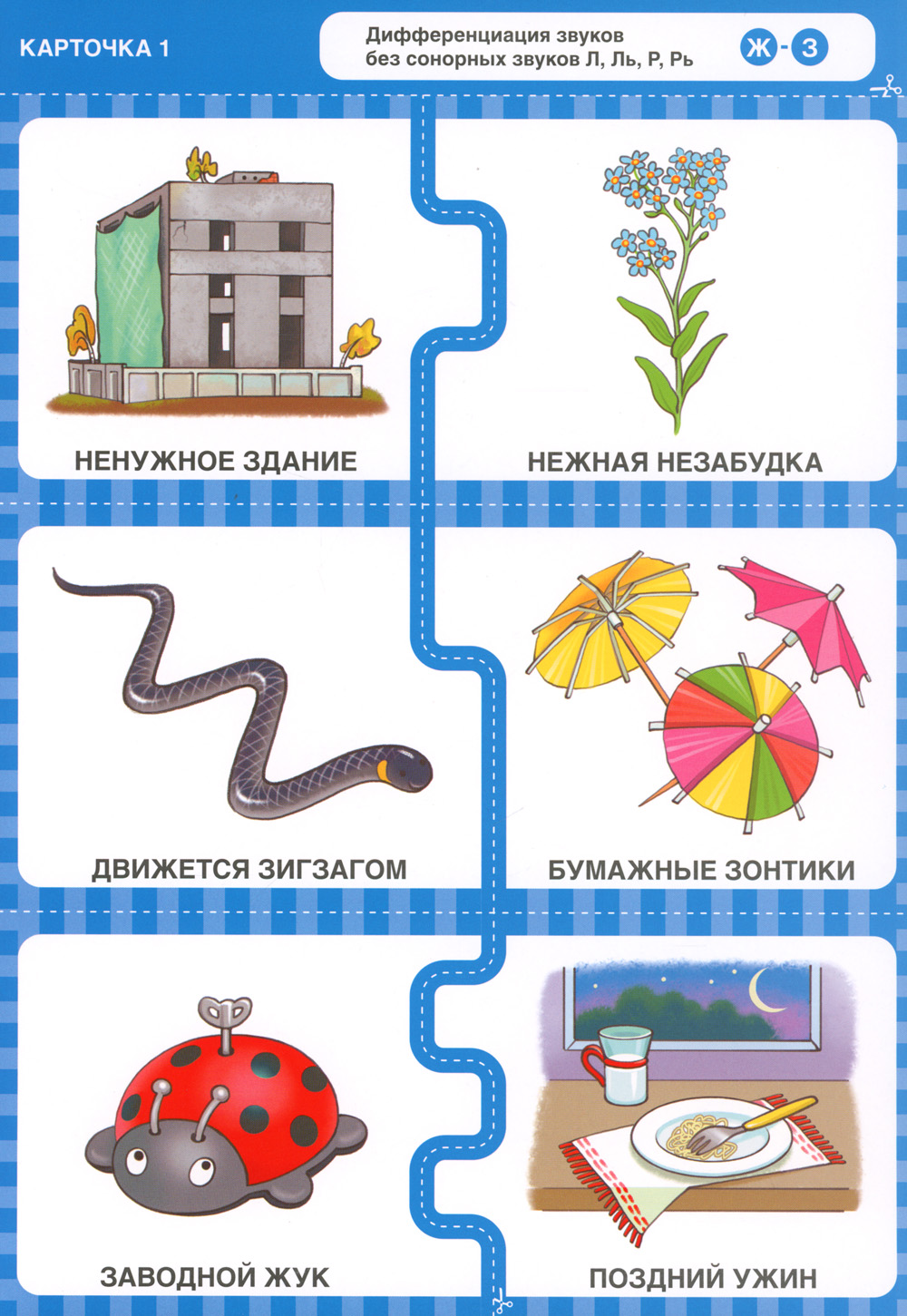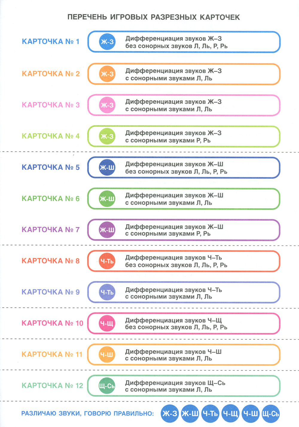 Различаю звуки, говорю правильно! Шипящие Ж-З, Ж-Ш, Ч-ТЬ, Ч-Ш, Ч-Щ, Щ-СЬ: комплект логопедических игровых карточек
