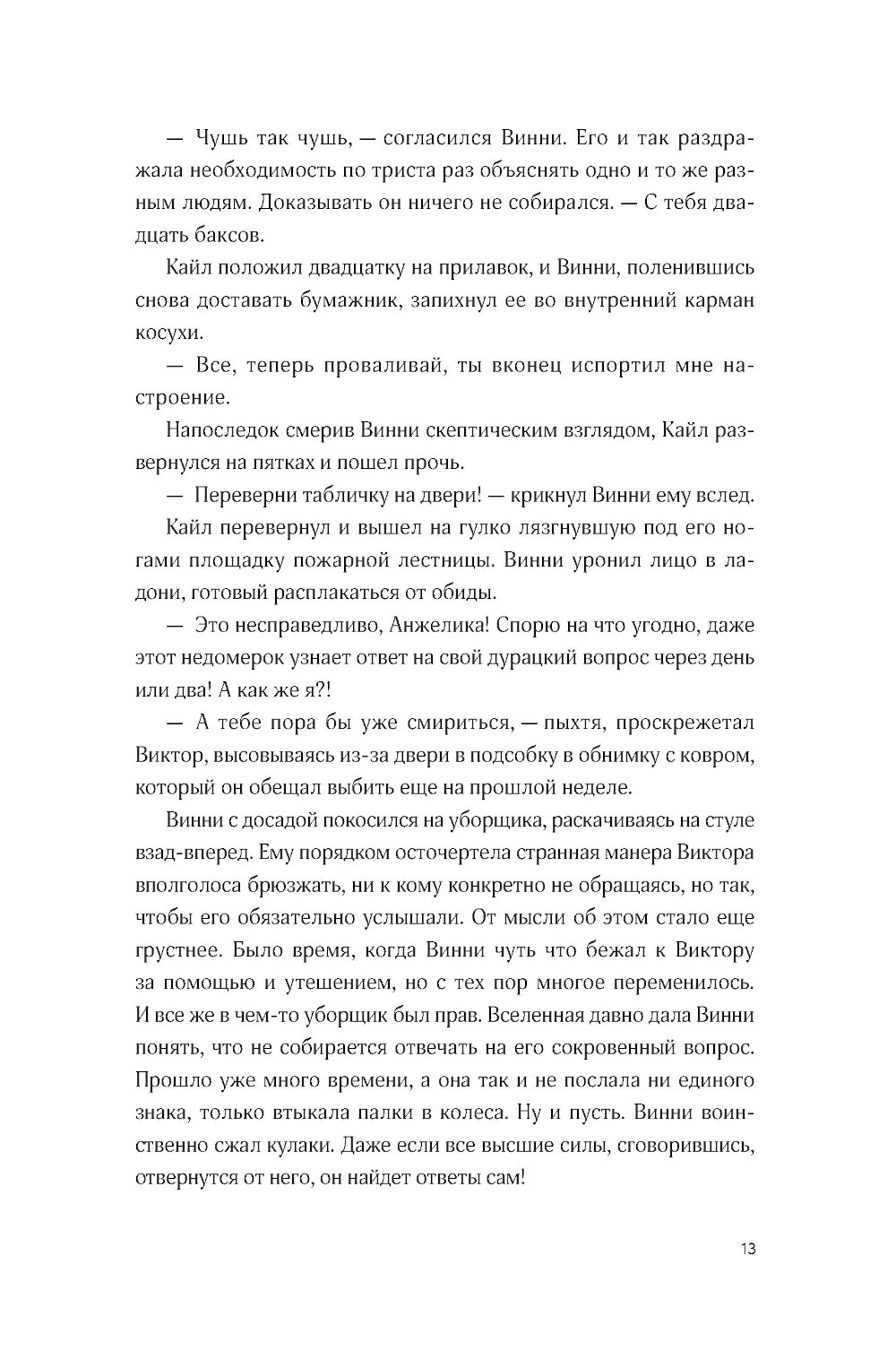Рыжеволосый панк Винни - владелец небольшой лавки всякой всячины в городке Тихие Липы. А еще у Винни есть уникальный дар: стоит ему выслушать чей-либо сокровенный вопрос, как в ближайшее время вселенная отвечает на него самым неожиданным образом. Однако магический талант не помогает Винни разгадать собственную загадку. Больше всего на свете он хочет знать, куда исчезла его мать. Однажды в магазинчик заходит странный посетитель по имени Тейт - драчливый бездомный парень, потерявший память. У него в руке Винни замечает визитку своей матери. Посчитав находку зацепкой, он предлагает Тейту вместе попытаться раскрыть тайны прошлого, вот только сделать это оказывается непросто...| Издательство | Marshmallow Books |