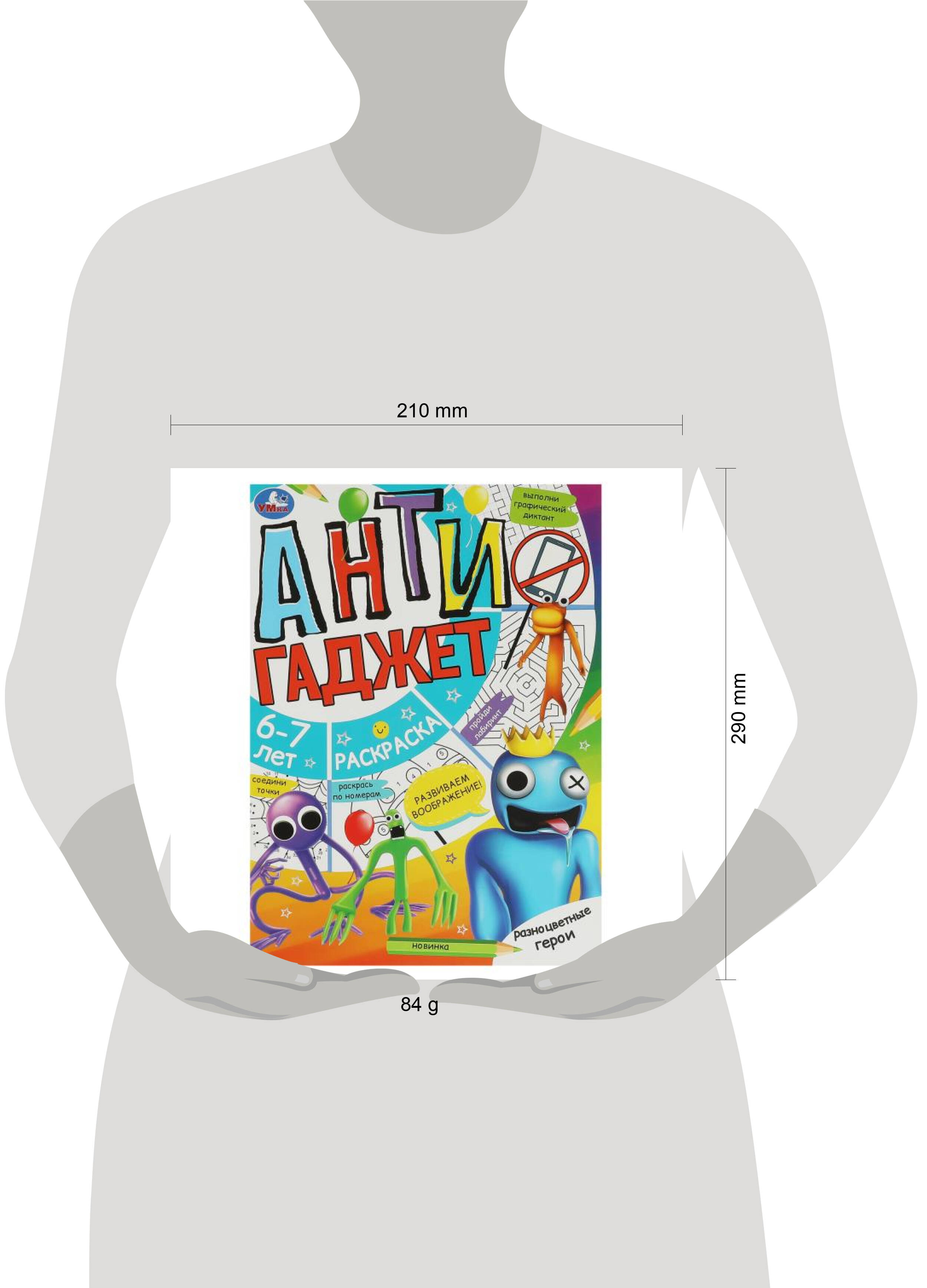 Аннотация: Разноцветные герои. 6-7 лет. Раскраска. Антигаджет. 214х290 мм. Скрепка. 16 стр. Умка в кор.50шт