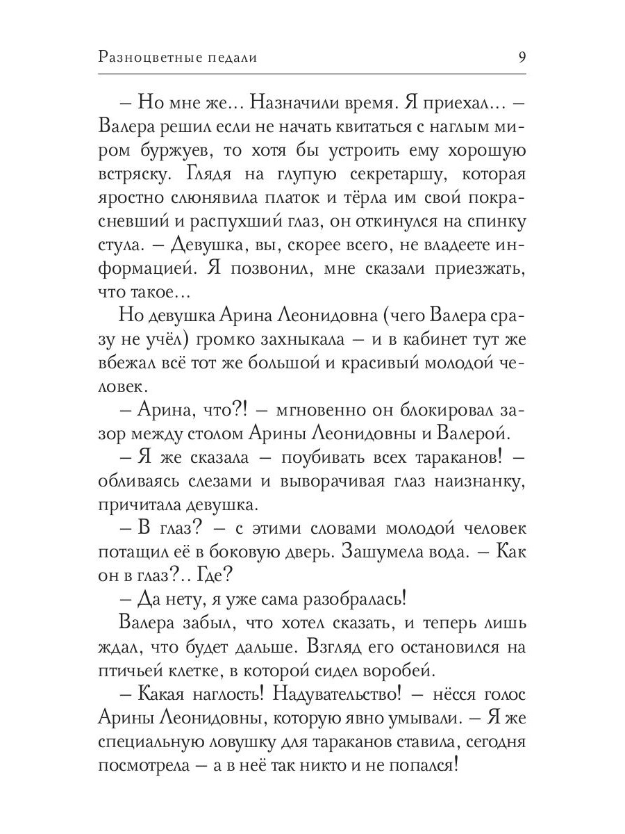 Глядя на хозяйку - владелицу клуба «Разноцветные педали» Арину Балованцеву, её личный секретарь Валера чувствовал: рядом с ней надо быть героем - благородным, великодушным, мужественным. Или не быть совсем, уйти с Арининой орбиты. Но как уйти - если вокруг неё жизнь становится яркой и осмысленной! И как признать, что ты, мужчина, не только не герой, но и проигрываешь женщине по всем показателям?! Зависть… В душе Валеры разрасталась зависть. Хотелось доказать, что Балованцева не так уж и хороша, что её величие - только пиар-ход. И однажды эта возможность представилась.| Издательство | Т8 RUGRAM |