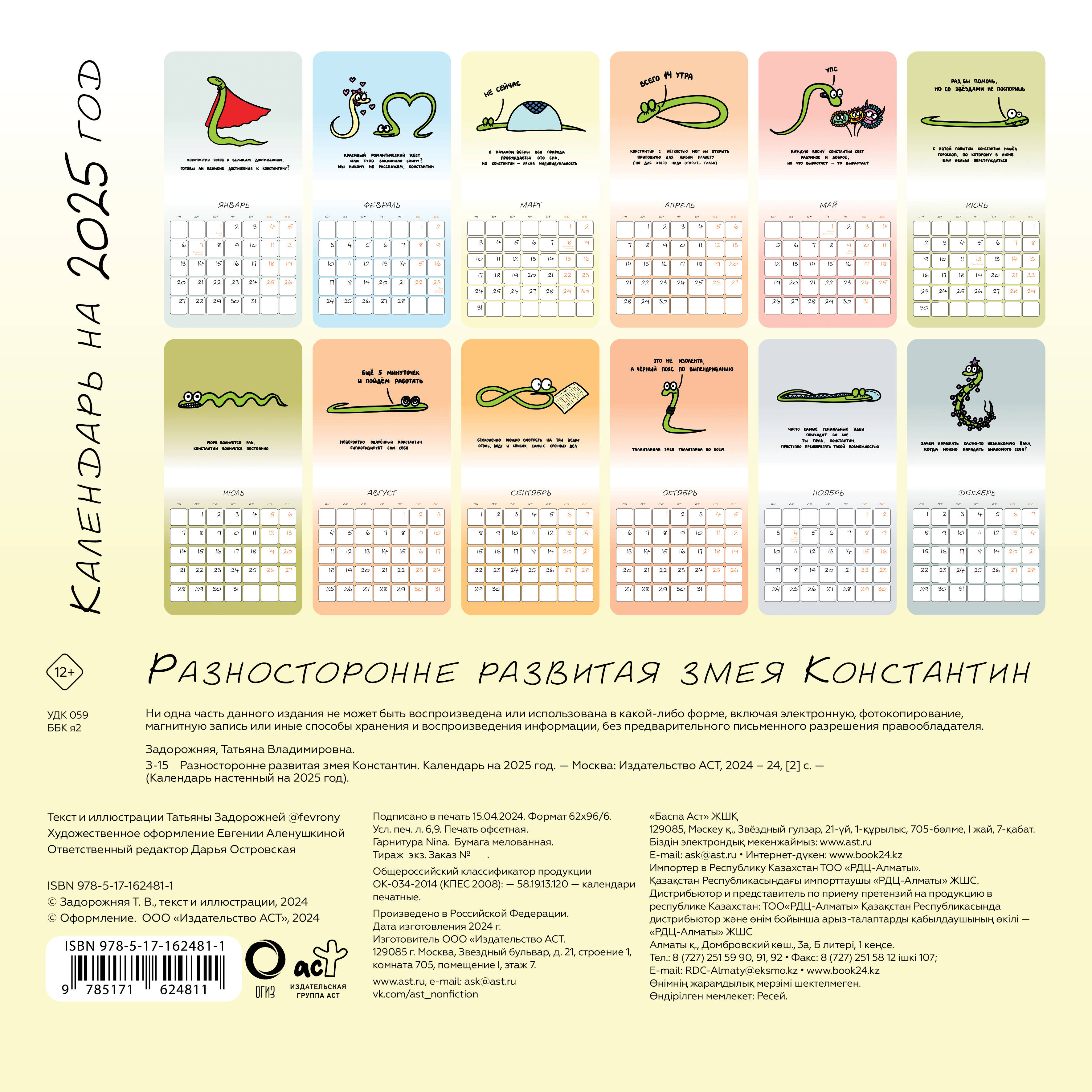 Аннотация: Разносторонне развитая змея Константин. Календарь на 2025 год