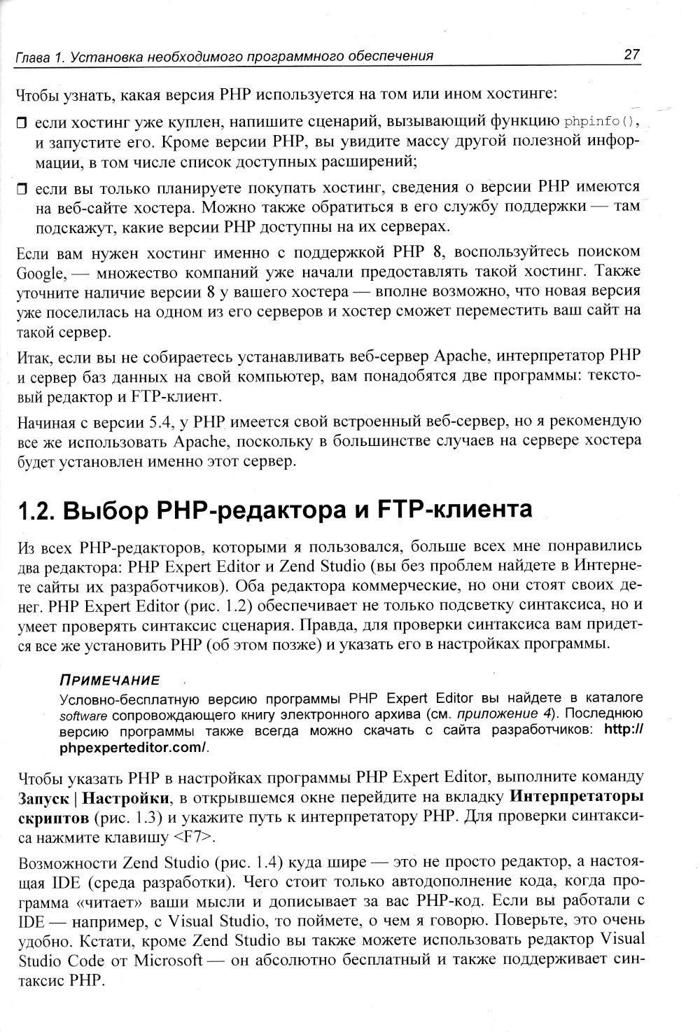На практических примерах описано создание веб-приложений на языке PHP версии 8.x. Даны начала разработки на PHP: установка и настройка Apache 2.4, PHP, MySQL и кросс-платформенной сборки ХАМРР, выбор редактора РНР-кода, синтаксис языка, самые полезные функции и нововведения PHP 8.x. Рассмотрено создание веб-приложений с использованием популярного фреймворка Laravel и шаблонизатора Blade. В качестве хранилища данных использованы два сервера - самая современная версия MySQL и набирающая популярность СУБД MongoDB. Раскрыты особенности создания индикатора загрузки файла и разыменовывания массивов, приведены примеры устранения типичных SEO-ошибок, допускаемых программистами, описана работа с PDO, JSON, MP3, Curl, MobileDetec. Особое внимание уделяется безопасности веб-приложений - рассматривается, как уберечь их от основных атак, как установить SSL-сертификат и уберечь сам сервер от неприятностей.| Издательство | BHV(БХВ) |