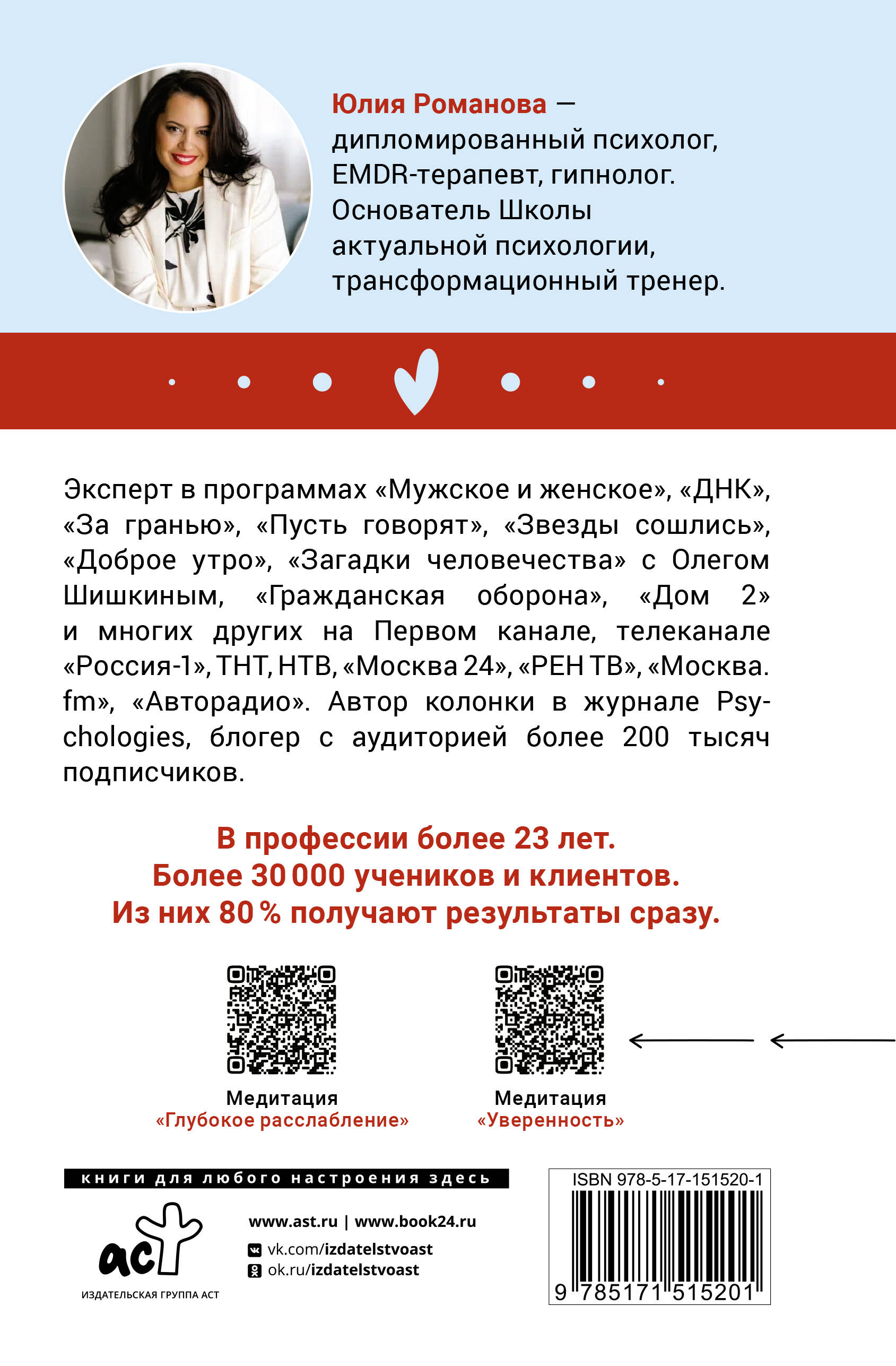 Вам нужна помощь прямо сейчас? Нет сил ждать консультации с психологом? Откройте книгу Юлии Романовой, дипломированного психолога и эксперта в программах «Мужское и женское», «Пусть говорят», «За гранью». Перед вами - психологическая аптечка, в которой собраны действенные лечебные средства на любой случай. Вы сможете получить ответы на вопросы: • Как пережить развод и расставание; • Как восстановиться после ковида; • Как справиться с одиночеством; • Что делать, если вас уволили; • Как победить тревогу; И многие другие. Что бы с вами ни произошло, рядом будет эта книга - лучшая поддержка во времена кризисов.| Издательство | ИЗДАТЕЛЬСТВО "АСТ" |