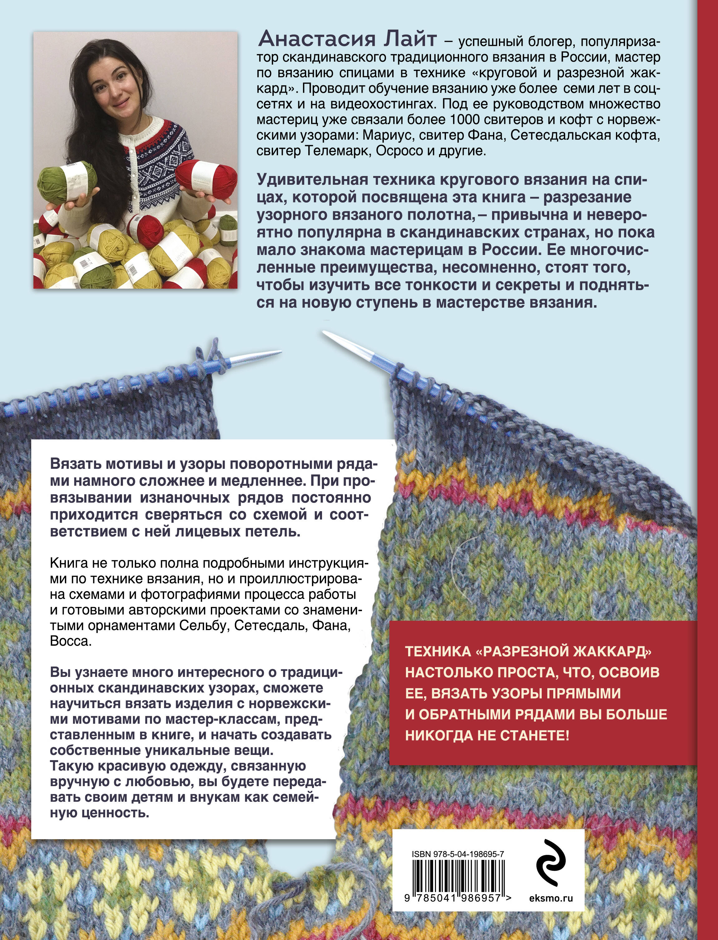 Первая в России книга, которая столь полно и подробно рассказывает обо всех нюансах такой великолепной техники вязания, как разрезной жаккард! Все его преимущества много-много лет назад оценили мастерицы из скандинавских стран и настолько широко приняли его в культуру своего традиционного вязания, что мы стали воспринимать разрезной жаккард как часть норвежского исторического опыта. Автор книги, великолепный мастер и блогер, на примере знаменитых норвежских узоров продемонстрирует все преимущества метода, и вы сможете самостоятельно связать не только предложенные модели в скандинавском стиле, но и придумать свои собственные! Автор утверждает, что к цветному вязанию поворотными рядами вы больше никогда не вернетесь!| Издательство | ООО "Издательство "Эксмо" |