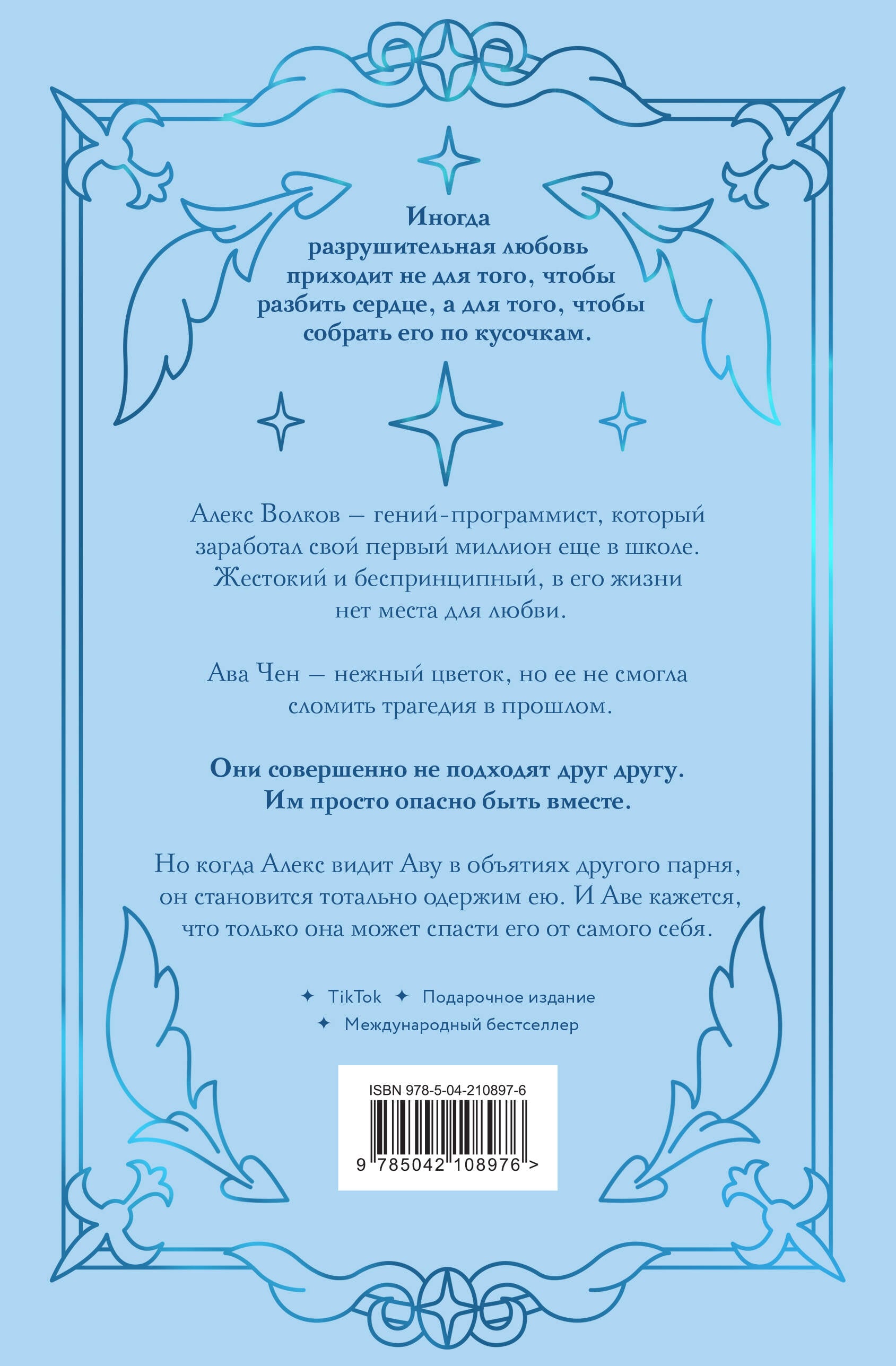 Иногда разрушительная любовь приходит не для того, чтобы разбить сердце, а для того, чтобы собрать его по кусочкам. Самый популярный романтический цикл Буктока теперь в подарочном оформлении. Ограниченный тираж: минималистичная суперобложка с сияющей фольгой, одобренная автором иллюстрация на переплете, яркий обрез и цветная верстка. Идеальный подарок для фанатов творчества автора и для тех, кто хочет им поделиться. «Разрушительная любовь» - первая книга цикла. Он рассказывает о четырех очень разных подругах, каждая из которых обретает любовь. Одна книга - одна история любви. Алекс Волков - гений-программист, который заработал свой первый миллион еще в школе. Жестокий и беспринципный, в его жизни нет места для любви. Ава Чен - нежный цветок, но ее не смогла сломить трагедия в прошлом. Они совершенно не подходят друг другу. Им просто опасно быть вместе. Но когда Алекс видит Аву в объятиях другого парня, он становится тотально одержим ею. И Аве кажется, что только она может спасти его от самого себя.| Издательство | ООО "Издательство "Эксмо" |