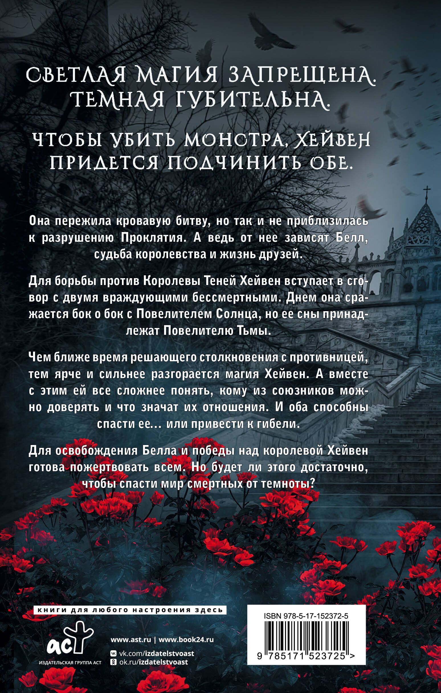 Захватывающее приключенческое фэнтези с сильной героиней, любовной линией и яркими, оригинальными квестами! Для всех, кто любит магические истории на пике эмоций! Светлая магия под запретом. Темная слишком опасна. Но Хейвен придется использовать обе, чтобы одолеть монстра. Она едва выжила, но так и не подобралась к разрушению Проклятия. Чтобы это стало возможным, ей пришлось заключить пакты с враждующими бессмертными. Днем она бьется рядом с Повелителем солнца. Но ее сны принадлежат Повелителю Тьмы. Чем ближе финал, тем сложнее понять, кому из двоих можно доверять. Оба могут уничтожить ее - и спасти. Для освобождения лучшего друга, попавшего в лапы монстров, она пойдет на любой риск. Но сможет ли она справиться со Тьмой, если та решит наступать?