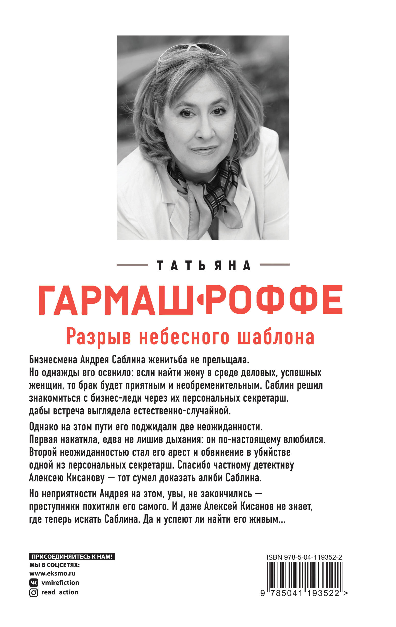 Бизнесмен Андрей Саблин жениться не собирался: не видел в семейной жизни никакого смысла. Но однажды его осенило: надо найти жену в среде деловых, успешных женщин, и тогда брак будет приятным и необременительным. Саблин решил знакомиться с бизнес-леди через их персональных секретарш, дабы встреча выглядела естественно-случайной. Однако на этом пути его поджидали две неожиданности. Первая накатила, едва не лишив дыхания: он влюбился. Он, убежденный, что любовь - лишь поэтический вымысел! Второй неожиданностью стал его арест: Андрея обвинили в похищении и убийстве одной из персональных секретарш. Спасибо частному детективу Алексею Кисанову - тот сумел доказать алиби Саблина. Но неприятности Андрея на этом, увы, не закончились. Едва он порадовался возможности провести вечер с любимой женщиной, как преступники похитили его самого. И даже Алексей Кисанов не знает, где теперь искать Саблина. Да и успеют ли найти его живым... Татьяна Гармаш-Роффе отлично знает, каким должен быть настоящий детектив, и следует в своих романах законам жанра. Театральный критик, она умеет выстраивать диалоги и драматургию чувств. Неординарная личность, она дарит часть своей харизмы персонажам. Непредсказуемость сюжетных поворотов, точность в логике и деталях, психологическая достоверность в описании чувств - таково ИСКУССТВО ДЕТЕКТИВА Татьяны Гармаш-Роффе.| Издательство | ООО "Издательство "Эксмо" |
