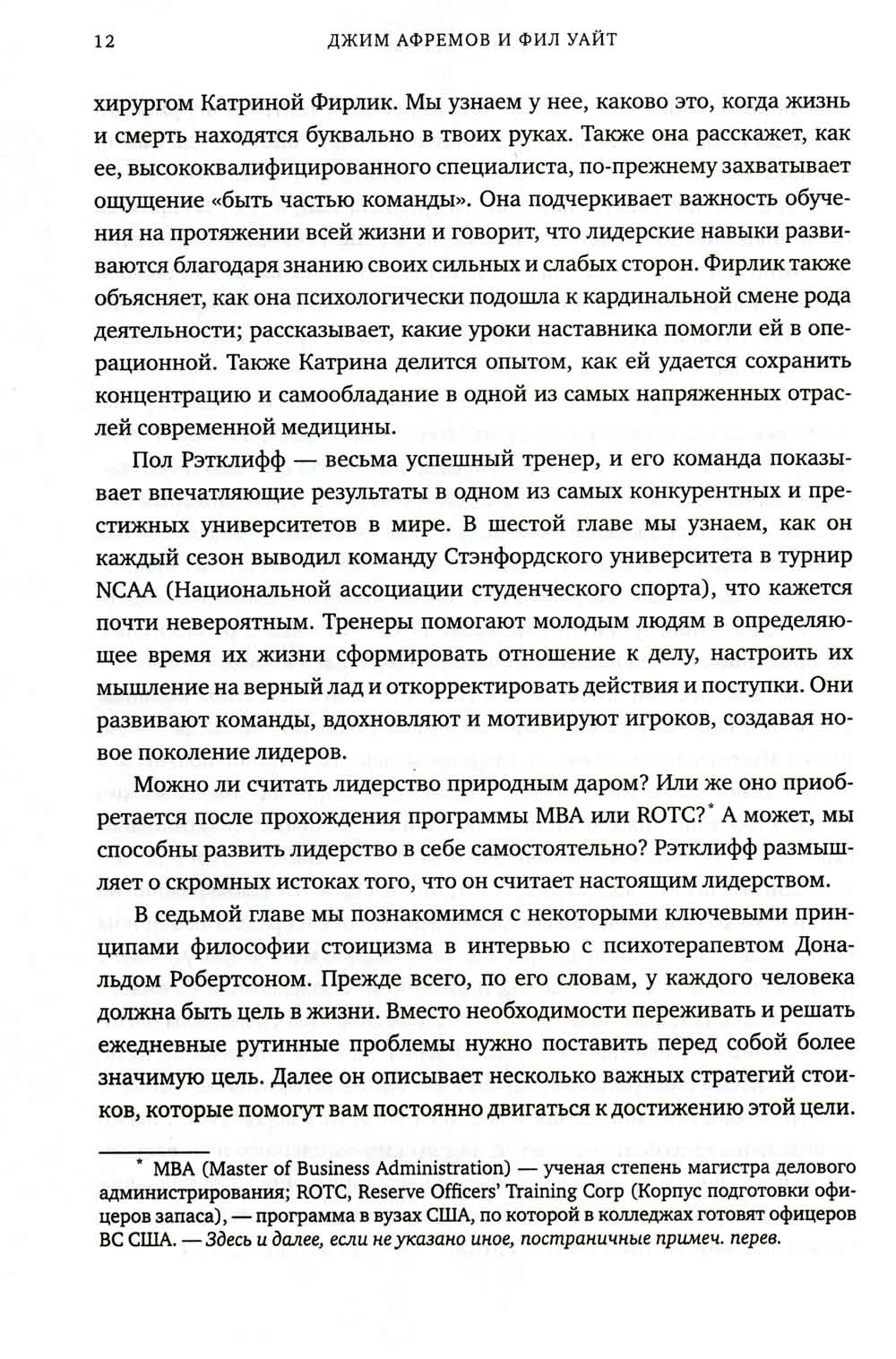 Хватит бороться с ожиданиями на работе и дома! Поменяйте коренным образом ваш взгляд на происходящее в жизни. Сила духа, которая отличает великих спортсменов, поможет вам достичь желаемого и стать выдающимся лидером. В этой книге обобщены техники коммуникаций и самосовершенствования, отточенные и проверенные на практике лучшими из лучших. В каждой главе приводятся интервью с лидерами в своих областях, представителями мира спорта, авиации, медицины, бизнеса, а также профессий, связанных с риском для жизни. «Книга предлагает вашему вниманию уникальный список лидеров из разных слоев общества и сфер деятельности. Вы наверняка найдете образец для подражания и стиль руководства, которые будут близки вам по духу и смогут соответствовать вашим стремлениям. Вы познакомитесь с практическими рекомендациями, инструментами и техниками, которые сможете применить для развития своих лидерских навыков вне зависимости от того, что день грядущий вам готовит. К лидерству ведет много дорог. И пришла пора начать свой путь к развитию разума лидера». (Джим Афремов, Фил Уайт)| Издательство | Азбука Бизнес |