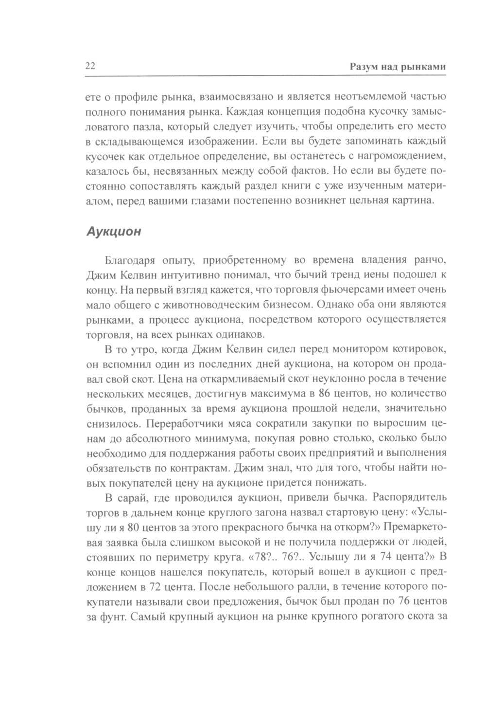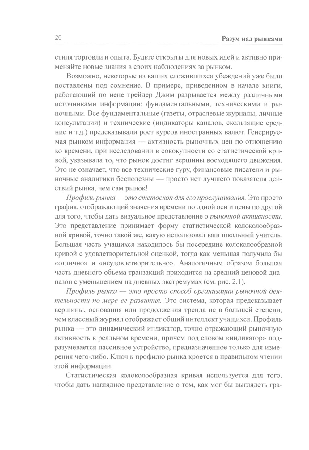 «Разум над рынками» - это практическое руководство, которое поможет торговать с шансами в свою пользу. В течение 20 лет, прошедших с первой публикации, авторы продолжали глубже вникать в поведение рынка и применение теории аукционов для принятия торговых и инвестиционных решений. Они пришли к выводу, что профилю рынка, с его эволюционирующей, многомерной структурой, следует уделять более пристальное внимание, так как он дает более точное представление о процессе аукциона путем сопоставления цены и объема.| Издательство | Лори |