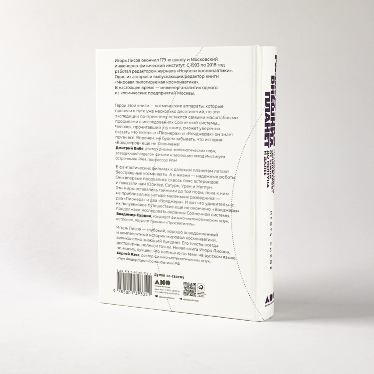В книге «Разведчики внешних планет: путешествие "Пионеров" и "Вояджеров" от Земли до Нептуна и далее» Игорь Лисов в захватывающих подробностях излагает историю подготовки, планирования, финансирования, запусков и полетов «Пионеров» и «Вояджеров» - космических аппаратов, миссией которых являлось исследование планет внешней Солнечной системы. Эти экспедиции позволили получить невероятно ценную информацию о Юпитере, Сатурне, Уране и Нептуне - небесных телах, знания человечества о которых прежде были весьма поверхностными. Два «Вояджера» и по сей день находятся в полете: постепенно теряя мощность, они перестают подавать сигналы и уходят все дальше от Земли, за пределы Солнечной системы. Этим кораблям никогда не суждено вернуться назад, однако на своем борту «Вояджеры» несут послания землян неземным цивилизациям - на случай, если такая встреча когда-нибудь состоится.