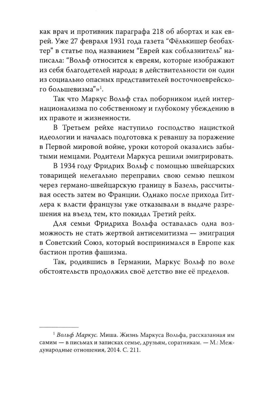 Маркус Вольф, легендарный начальник внешней разведки МГБ ГДР долгое время оставался «человеком без лица», но только для вражеских спецслужб. На деле он никогда не терял своего лица и до конца жизни не изменял своим принципам и убеждениям. Из судебной расправы, организованной режимом ФРГ в начале 90-х годов XX века, он не только вышел победителем, но и сумел повлиять на отмену приговоров по делам коллег, организовать правовую защиту агентов Штази, оказавшихся под судом за рубежом. Свой путь в историю Маркус Вольф начал еще в период эмиграции в СССР, когда осознал необходимость борьбы с коричневой чумой. По окончании Второй мировой войны он создавал посольство ГДР в Москве, а затем - службу внешней разведки в Берлине. Автор книги, лично знавший Маркуса Вольфа, в период обострившегося противостояния блоков-антиподов координировал связь между советской и немецкой разведками, которые в апреле 1972 года провели блестящую операцию по провалу в бундестаге ФРГ вотума недоверия канцлеру Вилли Брандту, проводившему политику сближения с соцстранами. В результате в мировой политике произошли существенные изменения: был подписан известный Хельсинский акт 1975 года, ГДР была принята в члены ООН, а угрозу атомной конфронтации удалось устранить.| Издательство | Родина |