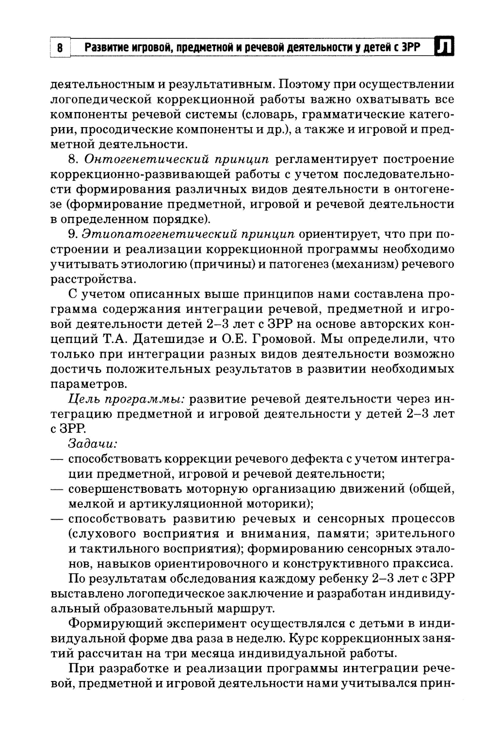 В книге изложены основы интеграционного подхода к решению коррекционных логопедических задач в продуктивных видах деятельности (речевой, предметной, игровой) у детей 2-3 лет с задержкой речевого развития (ЗРР), предложен вариант программы коррекционно-развивающей работы, описаны материалы для речевого развития и даны методические рекомендации родителям (законным представителям) по развитию предметной, игровой и речевой деятельности.| Издательство | Творческий центр Сфера |
