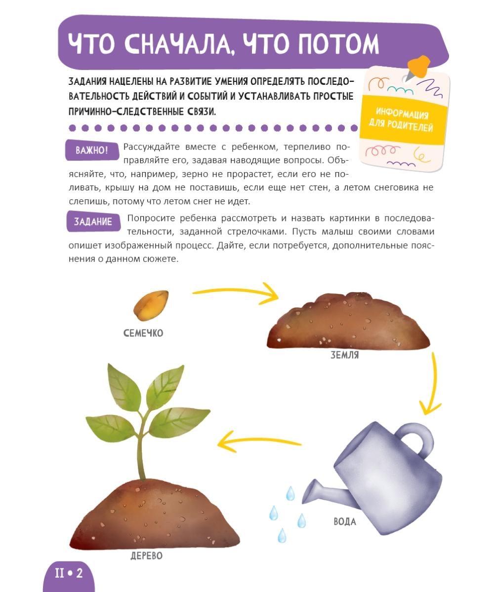 «Учусь мыслить и рассуждать» - это не просто яркая книжка для малышей, а комплексное пособие по развитию, созданное психологом специально для возраста 2-3 года. Почему книга понравится малышам и родителям? • Запуск речи. Простые и понятные задания стимулируют ребенка называть предметы, действия и описывать картинки. Это мощный инструмент для развития речи и пассивного словарного запаса; • Развитие внимания и памяти. Задания «Что сначала, что потом», «Сравнение предметов», «Загадки» тренируют мышление, память и концентрацию внимания, что необходимо для подготовки к детскому саду.| Издательство | Харвест |