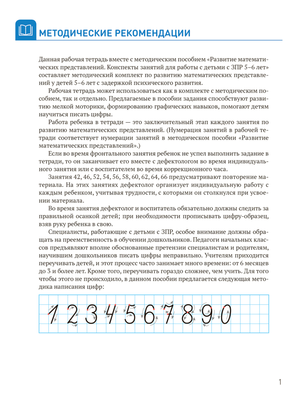 Данная рабочая тетрадь вместе с методическим пособием «Развитие математических представлений. Конспекты занятий для работы с детьми с ЗПР 5-6 лет» составляет методический комплект по развитию математических представлений у детей 5-6 лет с задержкой психического развития. Рабочая тетрадь может использоваться как в комплекте с методическим пособием, так и отдельно. Предлагаемые в пособии задания способствуют развитию мелкой моторики, формированию графических навыков, помогают детям научиться писать цифры.| Издательство | Мозаика-Синтез |