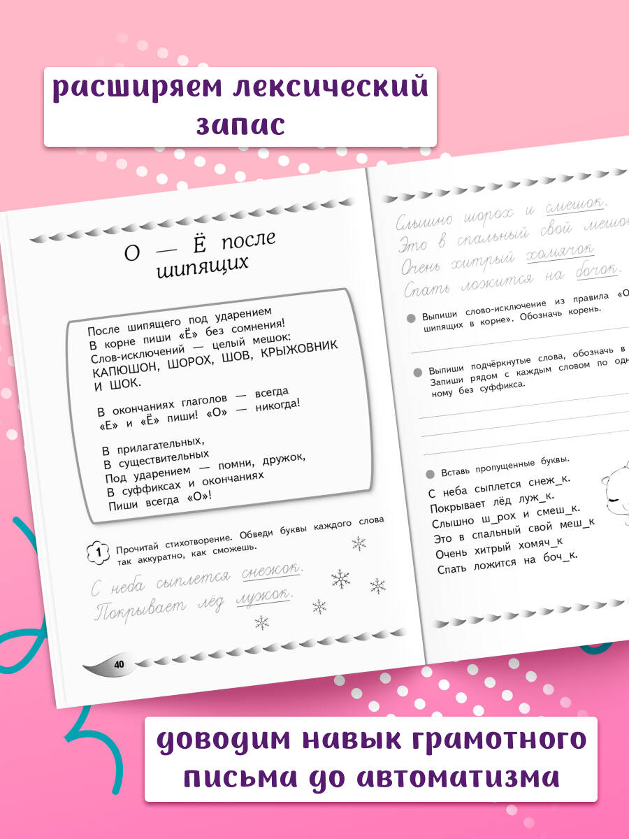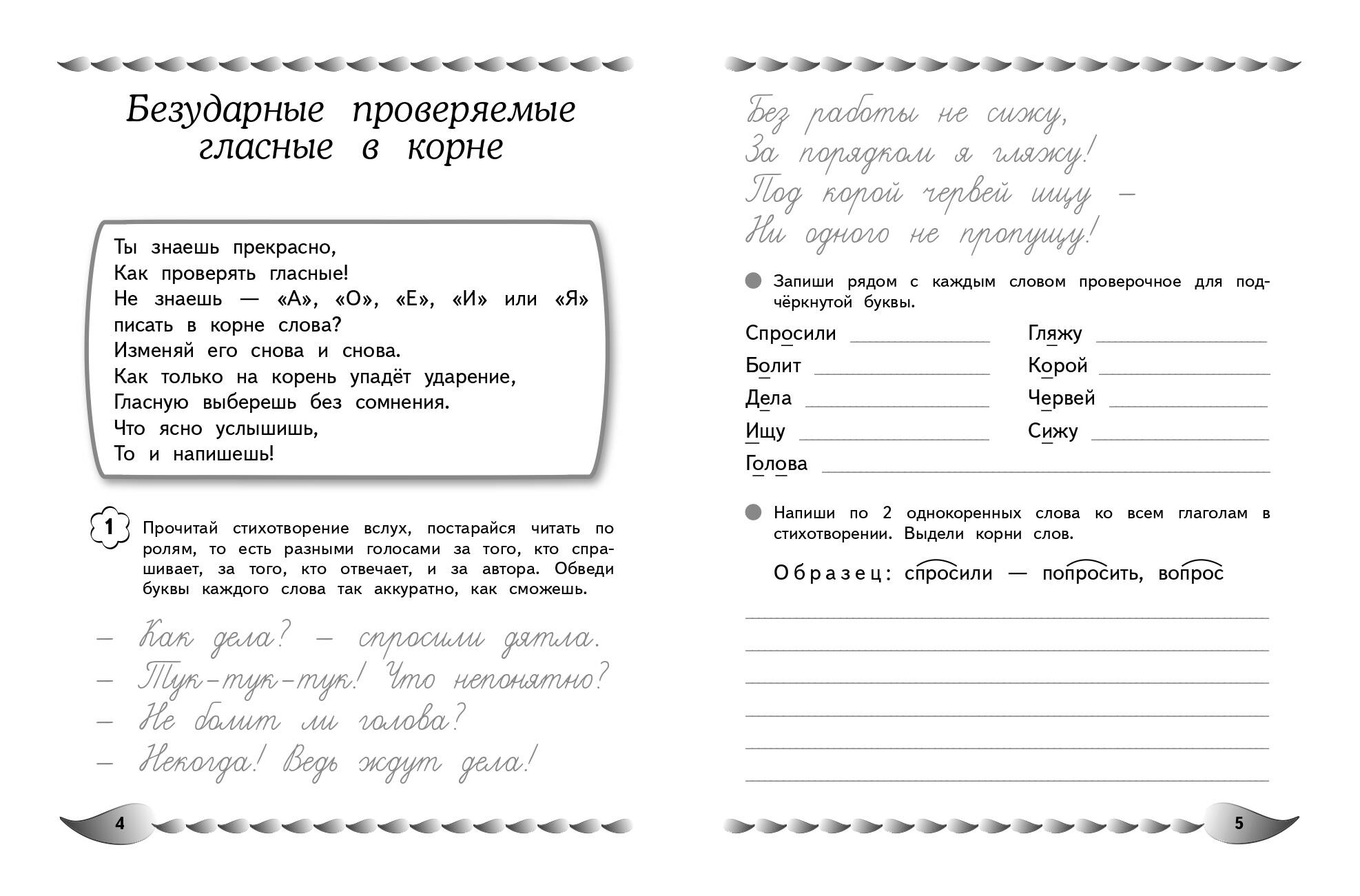 Основная задача пособия - закрепить навыки грамотного письма. Каждая глава посвящена отработке отдельного правила орфографии. Одни задания способствуют выработке автоматизма действий, другие рассчитаны на развитие творческого потенциала, расширение словарного запаса, умения сочетать слова разных форм и частей речи, формирование красивого почерка. Ко всем упражнениям, кроме творческих, имеются ответы, позволяющие учащимся проверить уровень своих знаний. Нестандартные игровые задания помогут развить способности ребенка и справиться с возникающими в процессе учебы затруднениями, а также станут прекрасной профилактикой возможных проблем. Комплекс занятий рассчитан на самостоятельную работу младшего школьника, но может быть использован педагогами дополнительного образования, учителями, родителями.| Издательство | ООО "Издательство "Эксмо" |