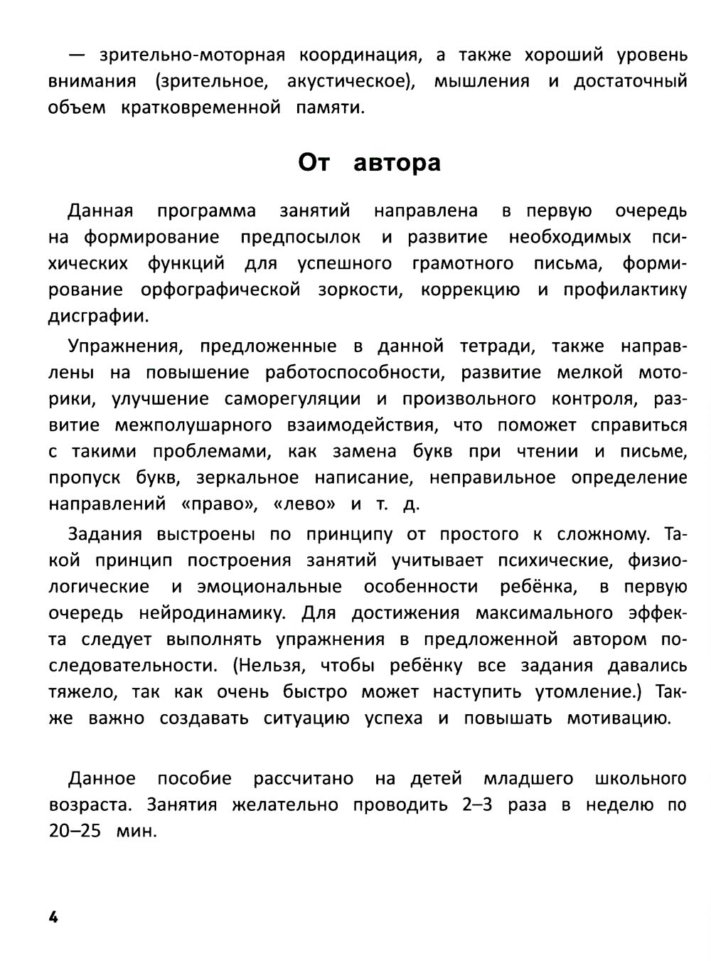Почему ребёнок, зная правила, продолжает допускать ошибки? Оказывается, что ребёнок с нормальным слухом, зрением и интеллектом может писать неграмотно из-за незрелости некоторых отделов мозга, отвечающих за двигательные функции рук, внимание, зрительно-пространственную ориентировку. Именно это чаще всего и становится причиной низкого уровня грамотности, плохого почерка и, как следствие, школьной неуспеваемости. Комплексные занятия, предложенные в данной тетради, направлены в первую очередь на формирование предпосылок и развитие необходимых психических функций для успешного грамотного письма, коррекцию и профилактику дисграфических ошибок в младшем школьном возрасте.| Издательство | Феникс |