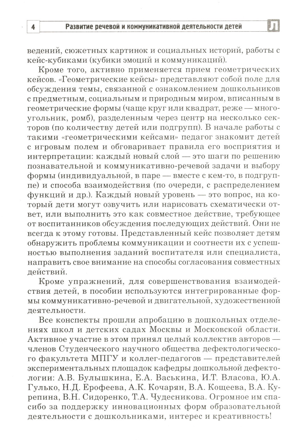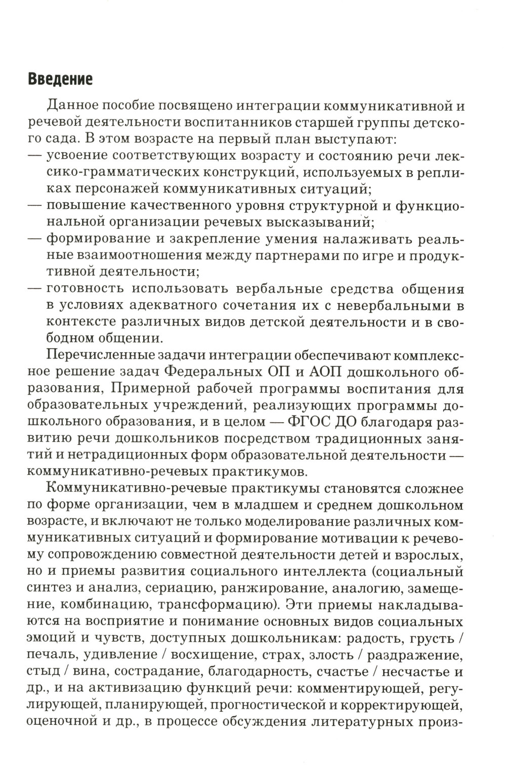 Пособие обобщает опыт интеграции социально-коммуникативного и речевого развития детей старшего дошкольного возраста в форме конспектов занятий и коммуникативно-речевых практикумов в соответствии с ФГОС ДО и Примерной рабочей программой воспитания для образовательных учреждений, реализующих программы ДО. В процессе проведения образовательной деятельности в старшей группе детского сада создаются условия для создания и функционирования общности на основе ценностей познания, сопереживания и сотворчества в игре, совместной продуктивной и конструктивной деятельности. Пособие предназначено для воспитателей, учителей-логопедов дошкольных групп и центров психолого-педагогической поддержки ребенка. Может быть рекомендовано в работе с воспитанниками, имеющими общее недоразвитие речи.| Издательство | Творческий центр Сфера |