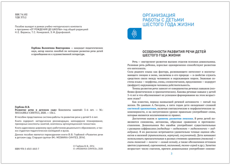 Развитие речи в д/саду.5-6л.Старшая группа.Конспекты занятий (ФГОС)| Автор/составитель | Гербова В.В. |