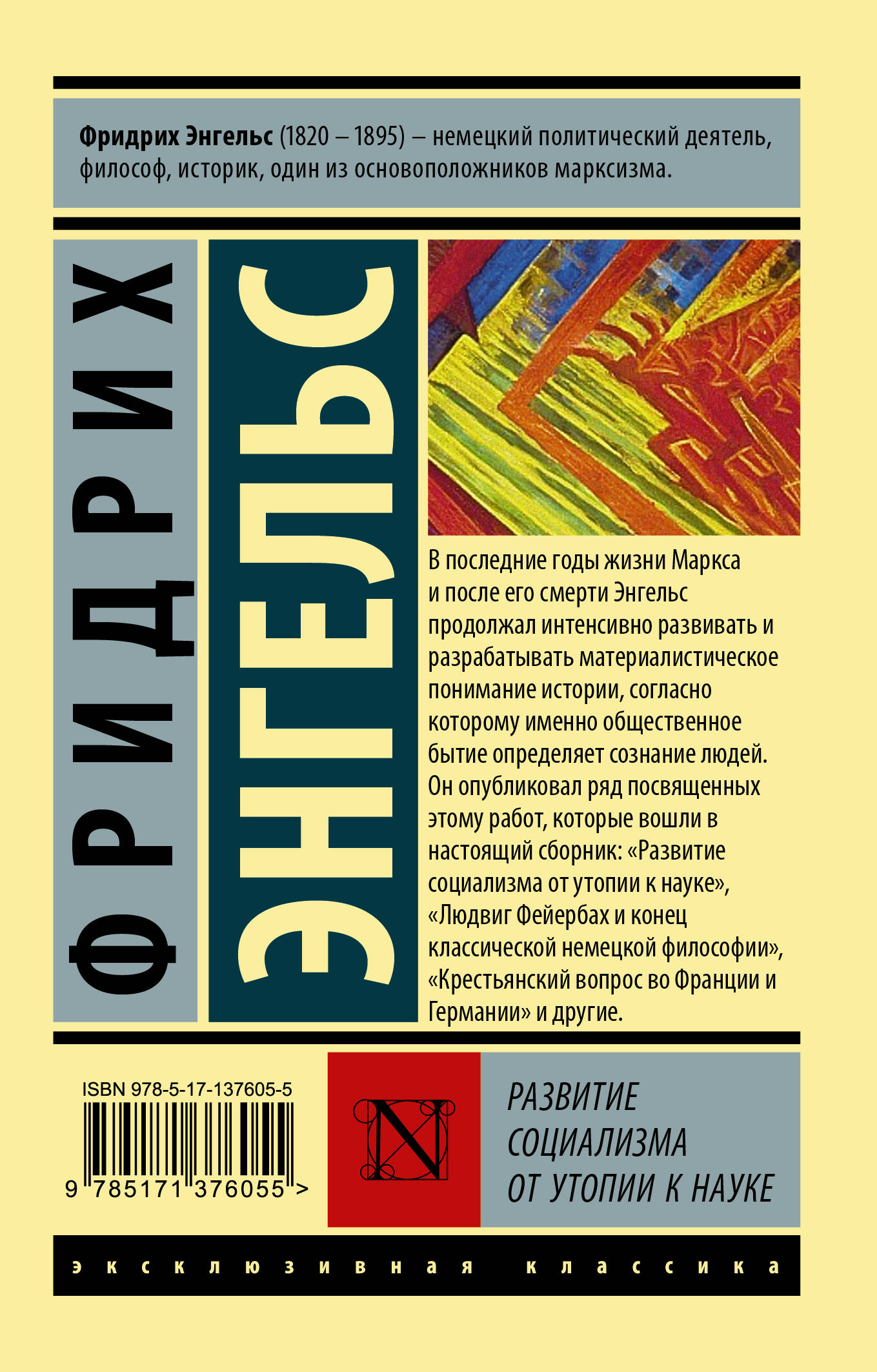 Фридрих Энгельс (1820 - 1895) - немецкий политический деятель, философ, историк, один из основоположников марксизма. В последние годы жизни Маркса и после его смерти Энгельс продолжал интенсивно развивать и разрабатывать материалистическое понимание истории, согласно которому именно общественное бытие определяет сознание людей. Он опубликовал ряд посвященных этому работ, которые вошли в настоящий сборник: "Развитие социализма от утопии к науке" "Людвиг Фейербах и конец классической немецкой философии" "Крестьянский вопрос во Франции и Германии"| Издательство | Издательство "АСТ" |