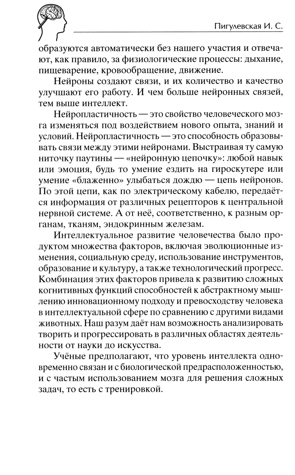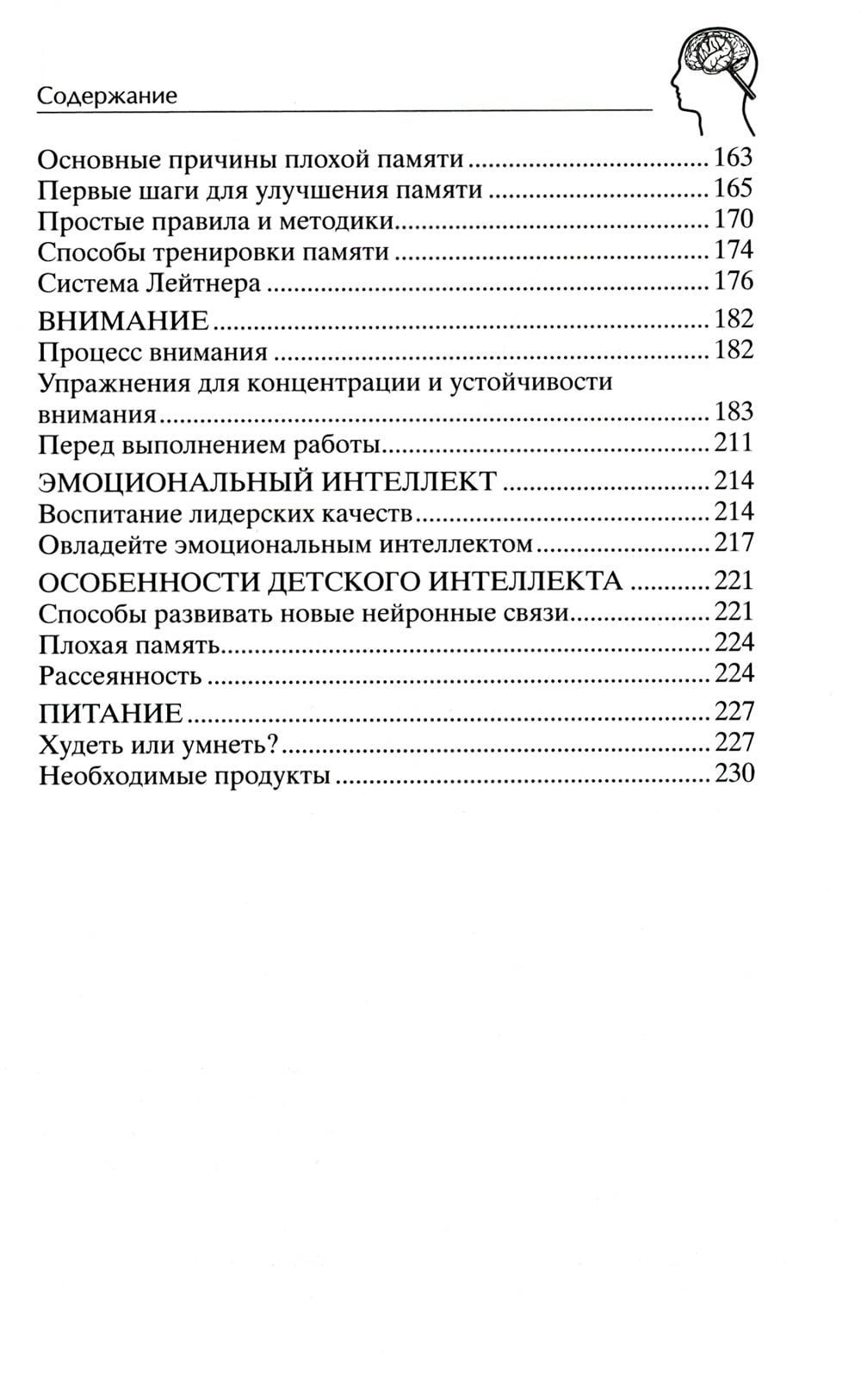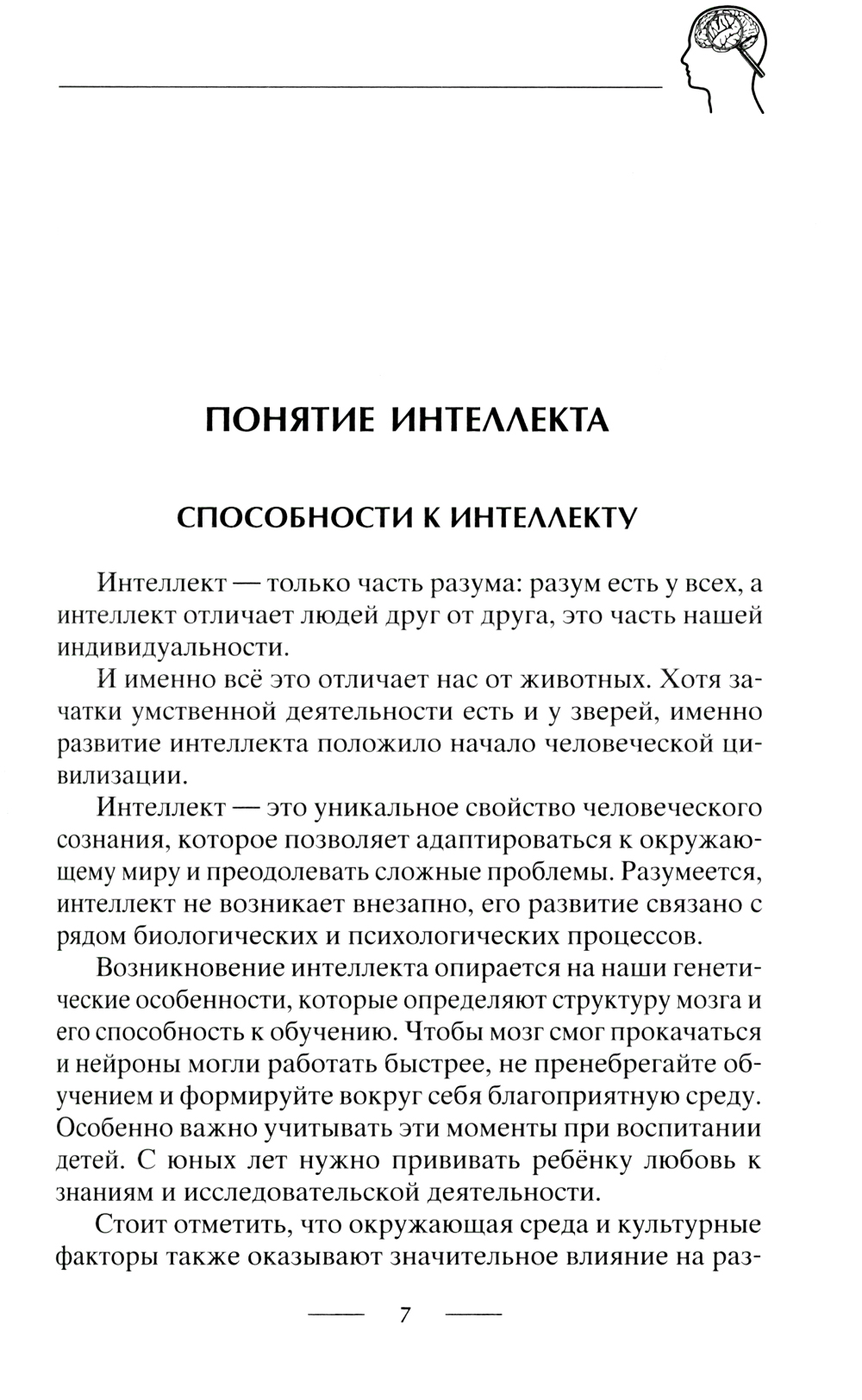 Интеллект - это уникальное свойство сознания, которое позволяет адаптироваться к окружающему миру, преодолевать сложные проблемы и достигать жизненных целей. Активизация умственной деятельности необходима сегодня всё большему числу людей - прогресс не стоит на месте, и для многих учебных или рабочих процессов требуется высокий уровень интеллекта, ключевую роль в развитии которого играют непрерывное обучение и саморазвитие. Участие в онлайн-курсах, мастер-классах и образовательных семинарах позволяет осваивать новые знания и обновлять старые - развивать нейронные связи. Интеллектуальное развитие - величина непостоянная. Умственные способности можно и нужно развивать, причём в любом возрасте. Известно много случаев, когда даже глубокие старики сохраняли «здравый рассудок», потому что постоянно тренировали свой мозг. Хотите сохранить на долгие годы высокий интеллект, ясный ум и твёрдую память? Читайте книгу, и вы получите массу полезной информации, загадок и упражнений для развития внимания, памяти и логики.| Издательство | Центрполиграф |
