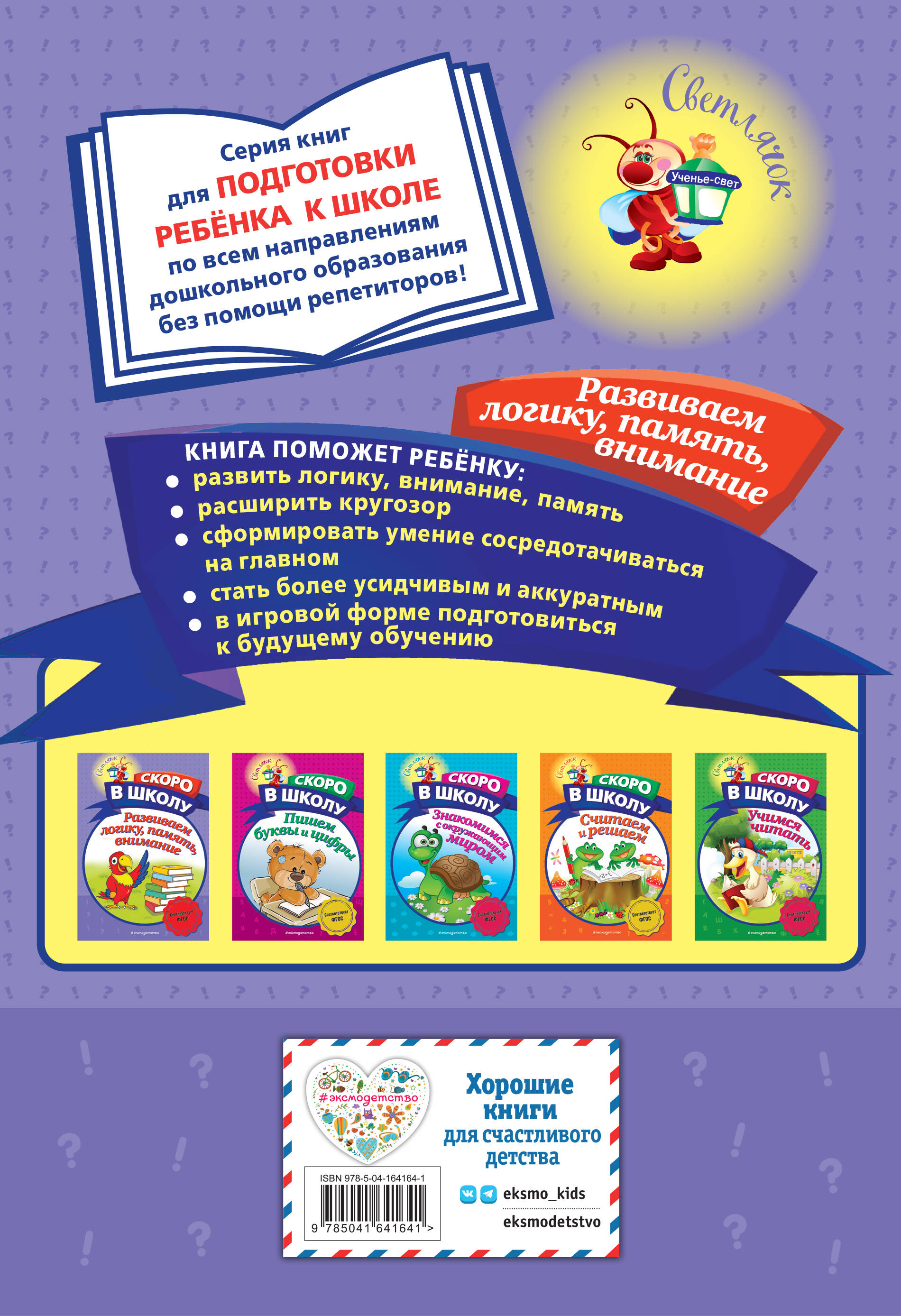 Цель книги - в игровой форме подготовить ребёнка к школе без помощи репетиторов. Тщательно подобранные занимательные задания способствуют тренировке таких свойств внимания, как концентрация, распределение, объём, переключение, наблюдательность; обеспечивают комплексное развитие памяти и логического мышления. Выполняя увлекательные задания, ребёнок научится рассуждать, сравнивать, обобщать, анализировать, выделять признаки предметов и явлений, делать элементарные умозаключения. Приобретая пособие для своего ребёнка, вы поможете ему: • развить логику; • научиться сосредотачиваться на главном; • интересно и с пользой провести время; • стать более уверенным в себе, а главное, позитивно настроенным на обучение.| Издательство | ООО "Издательство "Эксмо" |