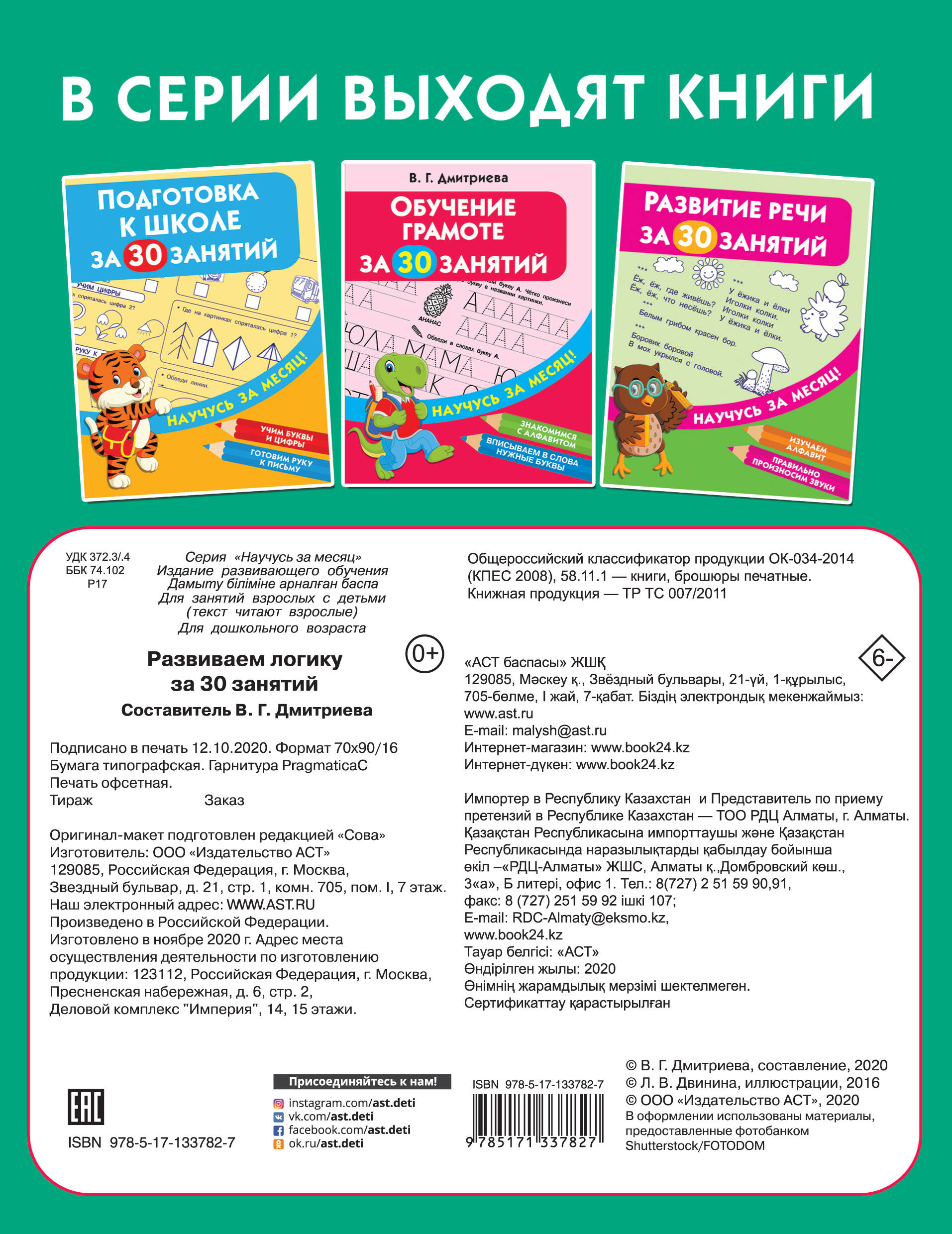 О чем эта книга Развивающее пособие - это множество познавательных и интересных упражнений, которые познакомят с алфавитом и помогут научиться правильно произносить звуки родной речи. Кому эта книга будет интересна Книга представляет интерес для родителей дошкольников и окажет неоценимую помощь при изучении алфавита и выработке хорошей дикции. Каковы особенности этой книги • Книга строится по принципу «Одна страница - одно занятие». Обучающий курс рассчитан на 30 занятий. • Разгадывая увлекательные логические задачки, сравнивая картинки и проходя лабиринты, малыш тренирует ловкость пальчиков, смекалку и сообразительность, развивает речь, память, внимание. • Занятия по этой книге - лучший способ развить логическое мышление и зрительное восприятие, потренировать мелкую моторику, расширить кругозор. • Курс занятий этой книги рассчитан на месяц. Продолжительность одного занятия - 15-20 минут.| Издательство | Издательство "АСТ" |