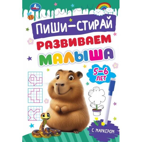 Прописи на спирали с маркером "Развиваем малыша, для детей 5-6 лет" из серии "Пиши-стирай" ТМ "УМка" - отличный тренажёр для развития графомоторных навыков: - занимательные задания - ламинированные страницы - возможность неоднократного использования - удобный формат - стираемый маркер в комплекте Серия прописей предполагает многоразовое использование. Все задания составлены с учётом рекомендаций психологов и представлены в игровой форме, что позволяет сформировать интерес к занятиям. Для большего удобства в комплекте уже предусмотрен маркер, на колпачке которого находится специальная губка для стирания написанного. Занятия с прописями ТМ "УМка" подготавливают руку к письму и способствуют развитию: - мелкой моторики рук - памяти - внимания - усидчивости Объём: 32 стр. Формат: 165 х 240 мм. Материал: офсетная бумага. Рекомендовано детям старшего дошкольного возраста.| Издательство | С-Маркет ООО |