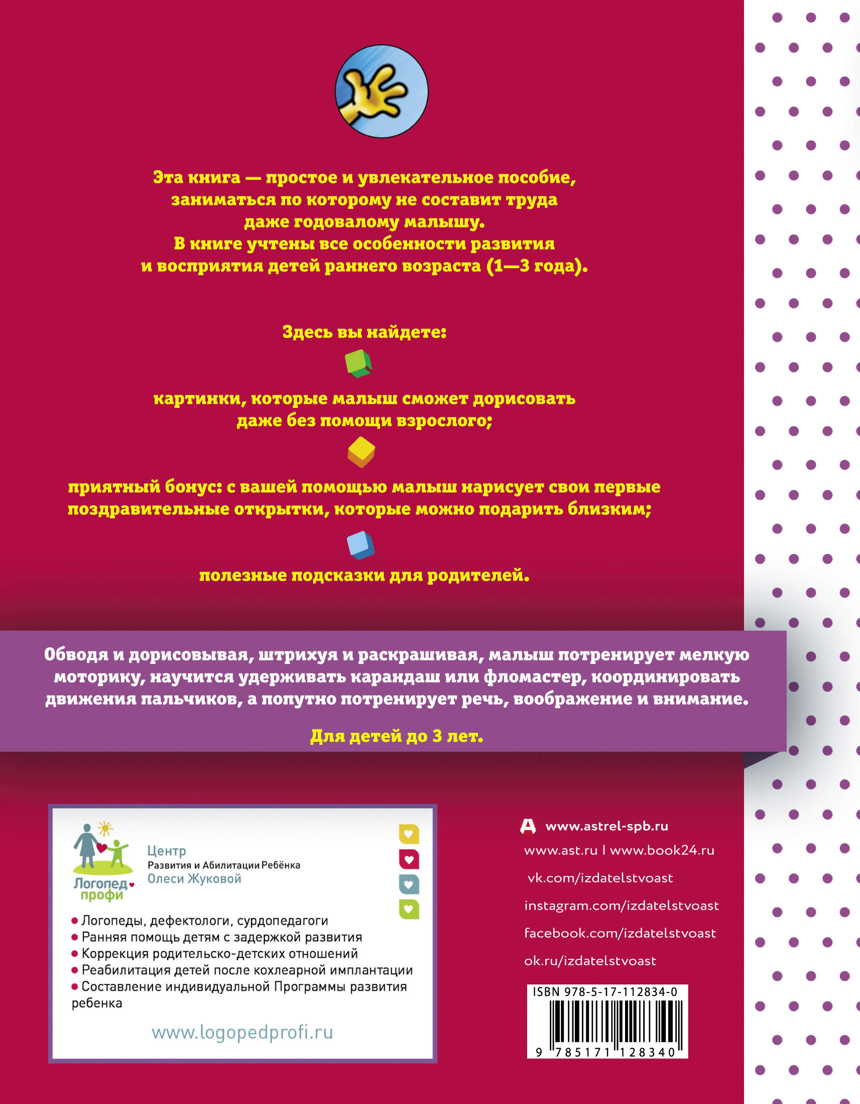 Эта книга - простое и увлекательное пособие, заниматься по которому не составит труда даже годовалому малышу. В книге учтены все особенности развития и восприятия детей раннего возраста (1-3 года). Рисуя пальчиками, малыш не только потренирует мелкую моторику, но и научится координировать движения руки, запомнит названия основных цветов, выучит новые слова. В книге вы найдете яркие картинки, полезные подсказки и приятный бонус: с вашей помощью малыш нарисует свои первые поздравительные открытки, которые можно подарить близким. Для детей до 3 лет.| Издательство | Издательство "АСТ" |
