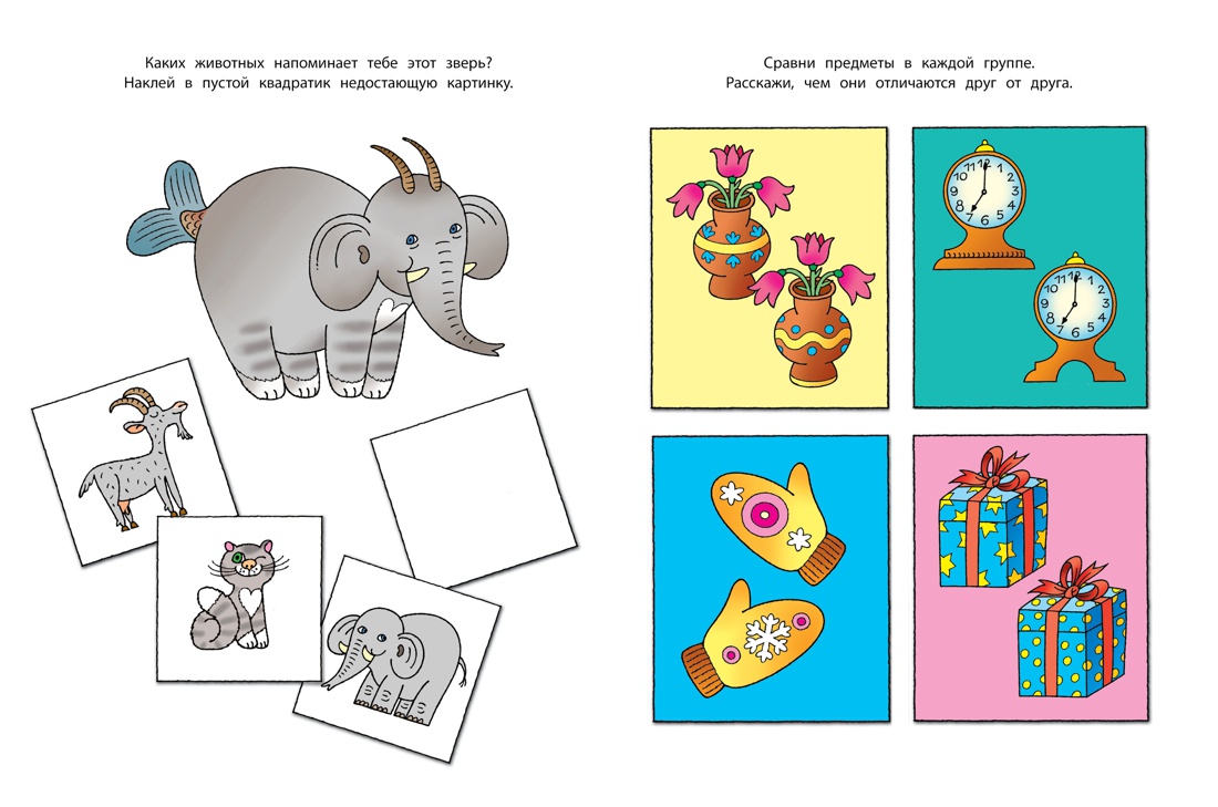 Занимаясь по этой книге, ваш малыш научится в правильной последовательности выполнять нужные действия, находить и объяснять связь между картинками, объединять и раскладывать предметы по группам. Ребёнку будет предложено выполнить задания и на комбинаторное мышление, найти ошибки на рисунках. Пусть малыш прокомментирует своё решение. Старайтесь быть более терпеливыми. Если ребёнок ошибся, подбодрите его, предложите выполнить задание ещё раз, но не делайте за него всю работу. Дайте ребёнку больше самостоятельности, создайте творческую атмосферу. Наклеивание картинок не только сделает процесс обучения увлекательным занятием, но и разовьёт мелкую моторику и координацию движений руки. По окончании занятий обязательно похвалите маленького ученика!| Издательство | Махаон |