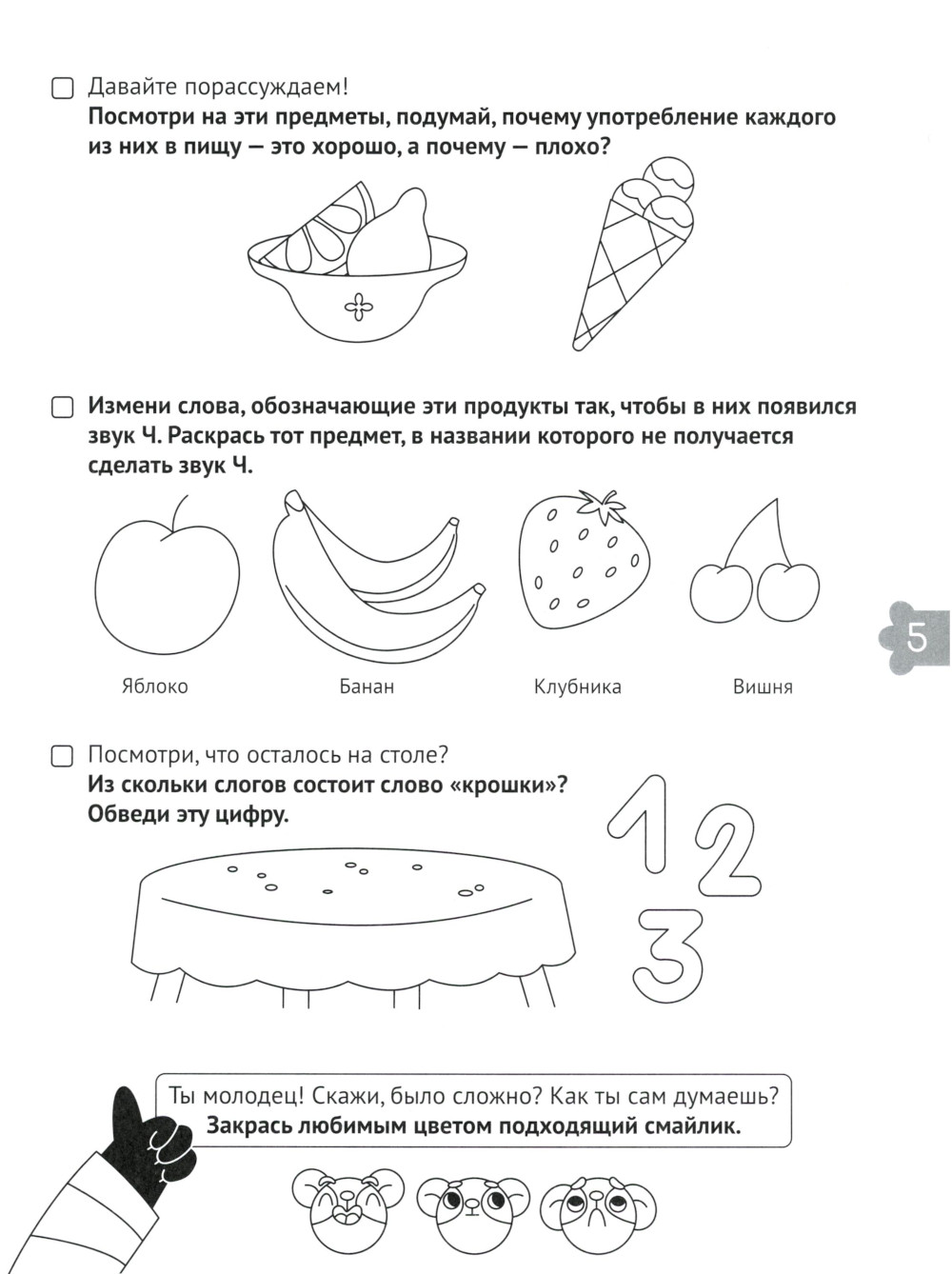 Настоящая тетрадь рекомендована для работы с детьми 5-6 лет и составлена с учетом возрастных особенностей детей данной возрастной категории. Главным персонажем тетради является мишка Панда. Структура тетради предполагает наличие заданий разного уровня сложности. Изучая тему, ребенок начинает с простых заданий и постепенно переходит к более сложным. Мы позаботились о том, чтобы сформировать у малыша навык самостоятельной оценки собственных результатов. Так, после каждого занятия, он имеет возможность оценить себя по 3х уровневой шкале.| Издательство | VoiceBook |