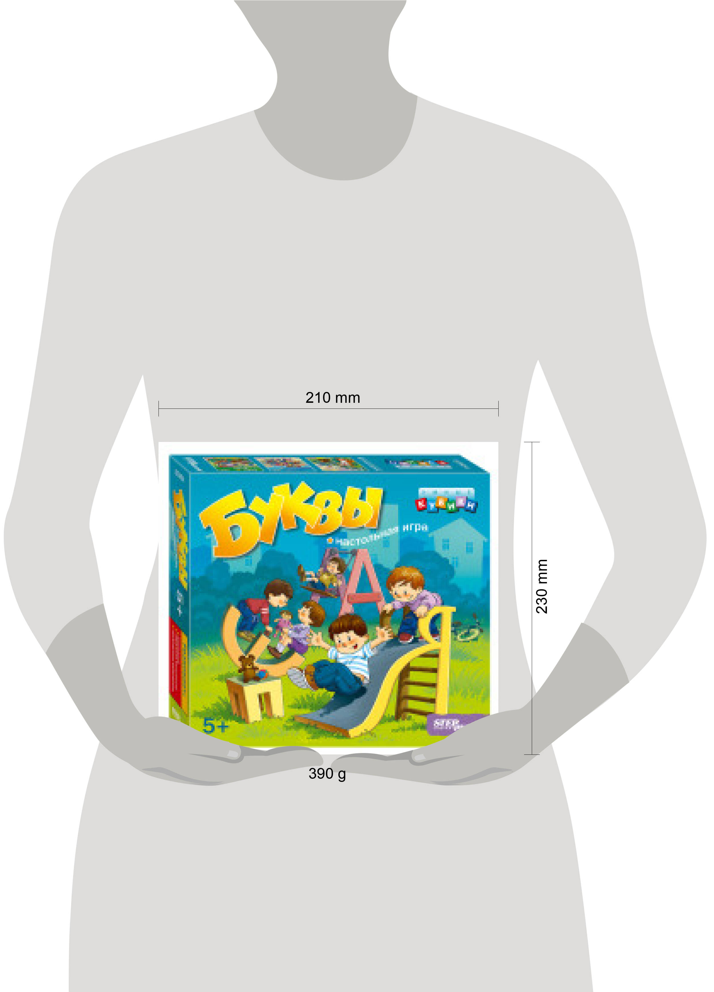 Настольная игра "Буквы" из серии "Умные кубики" способствует развитию у ребенка навыков логического мышления. Также игра развивает усидчивость, моторику, внимание и память. Чтобы в процессе игры не ошибиться, нужно быть очень аккуратным, терпеливым и внимательным. Занятия и игры с использованием "Умных кубиков" постепенно формируют у ребёнка все эти качества. С помощью этой игры вы выучите с ребёнком буквы русского алфавита. С этим набором можно не только играть, но также использовать для развития воображения. Например, сложите из кубиков простые слова, научитесь их читать. Детям нравится придумывать, на что похожа та или иная буква. Поищите с ребенком буквы, на которые начинаются ваши имена или придумайте сказку об их жизни в особенной стране Читляндии. Состав игры: - кубики - 6 шт.; - карточки двусторонние - 6 шт.; - карточки с животными - 36 шт.; - правила игры. Правила игры подробно описаны в инструкции. Суть игры: ребенку необходимо найти на карточке изображение, контур буквы или слово, которое на неё начинается. После этого нужно сопоставить их с кубиками. Возраст игроков: игра будет интересна детям от 5 лет. Количество игроков: 2-4 игрока. Материал:пластмасса. Бонус: игра "Уши, лапы и хвосты" (36 карточек). Полная игра состоит из 144 карточек (36 различных животных). Эти карточки можно найти в играх "За покупками", "Животные", и "Цифры и формы", серии "Умные кубики". Цель игры - собрать из карточек целое изображение животного. Фактически, в игру "Уши, лапы и хвосты" можно играть сразу, но в одном наборе с кубиками представлены только 9 животных. Всего в четырех наборах 36 зверей. Таким образом, собрав карточки из всех игр, ребенок узнает гораздо больше животных и значительно пополнит свой словарный запас. В серии "Умные кубики" представлены: - Развивающая игра "Цифры и формы" - Развивающая игра "Животные" - Развивающая игра "За покупками"| Издательство | Степ Пазл ЗАО |