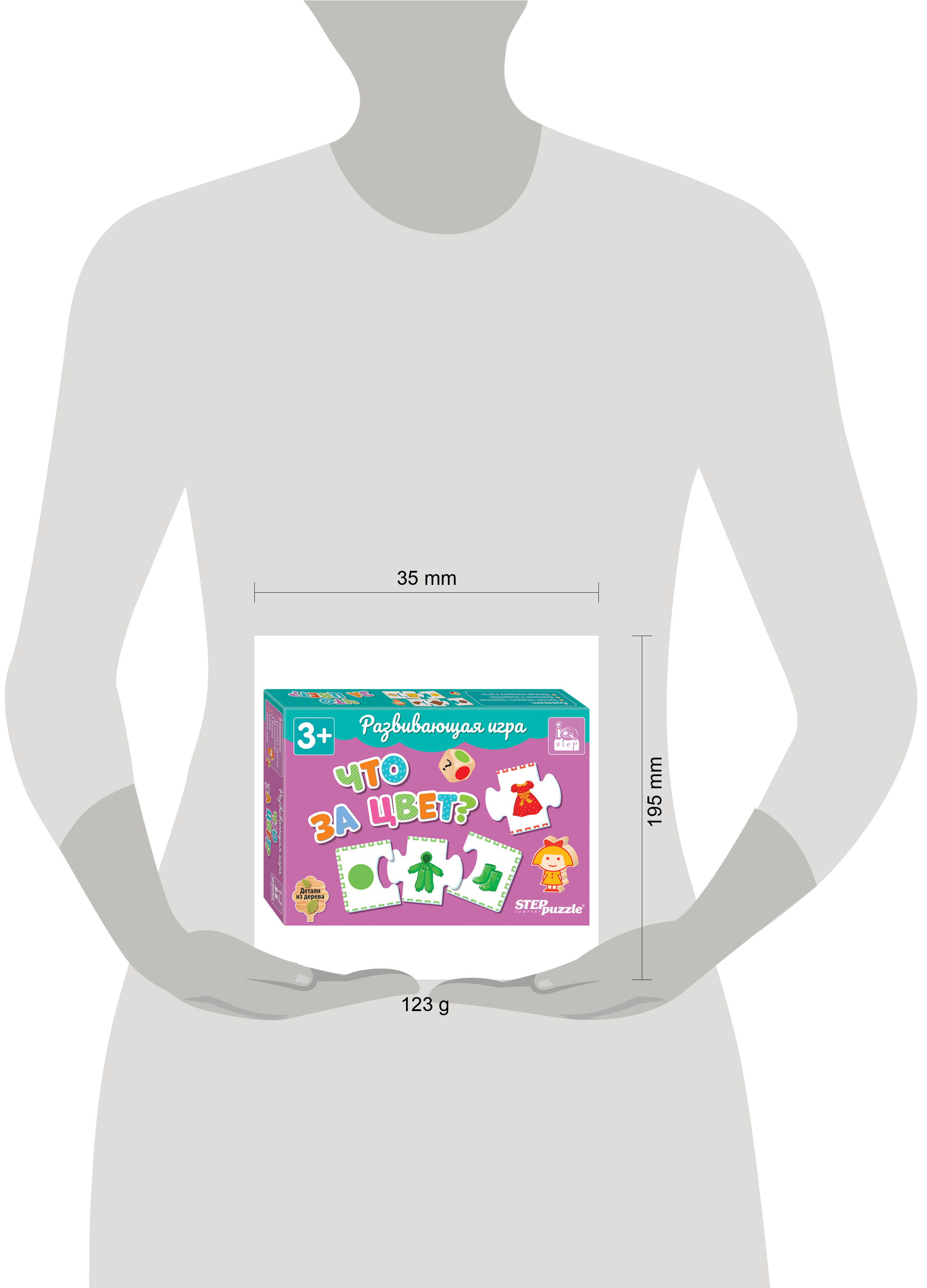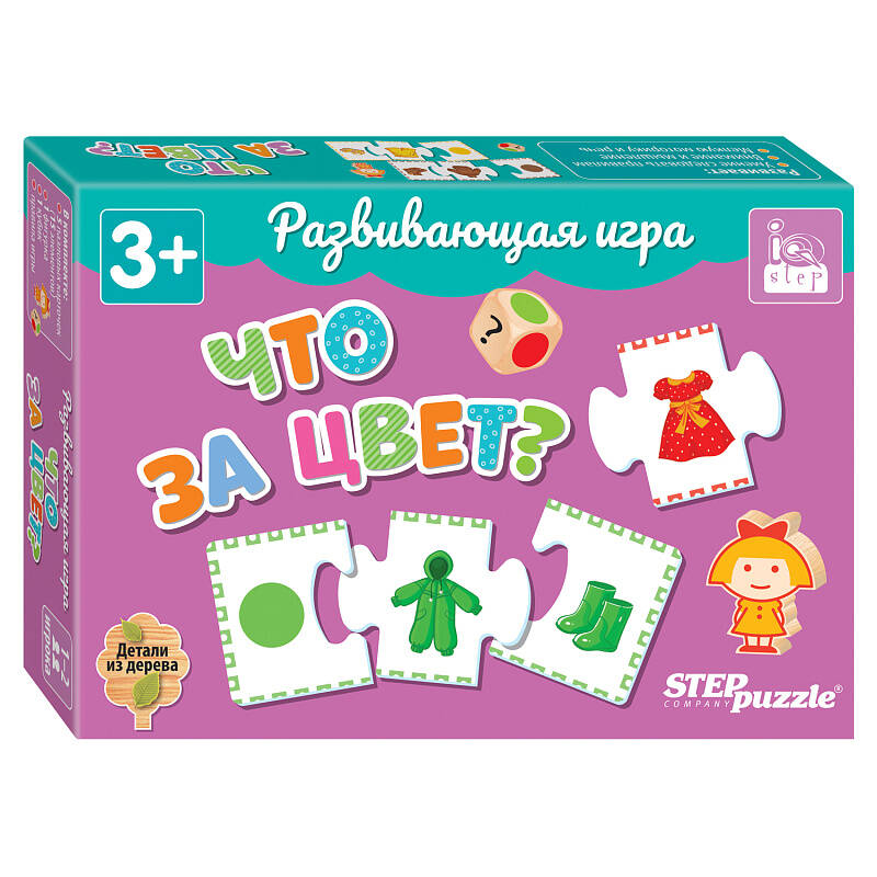 "Что за цвет?" - развивающая игра для детей от 3-х лет. Познакомит с основными цветами. Расскажет о различных видах одежды. Научит объединять предметы по смыслу и цвету. Игра развивает: мышление; память; внимание; Что в наборе? Пазловые карточки - 5 шт.; игральный кубик - 1 шт; деревянная фишка - 1 шт; правила игры - 1 шт. Цель игры: правильно собрать карточку из 3х пазлов.| Издательство | Степ Пазл ЗАО |