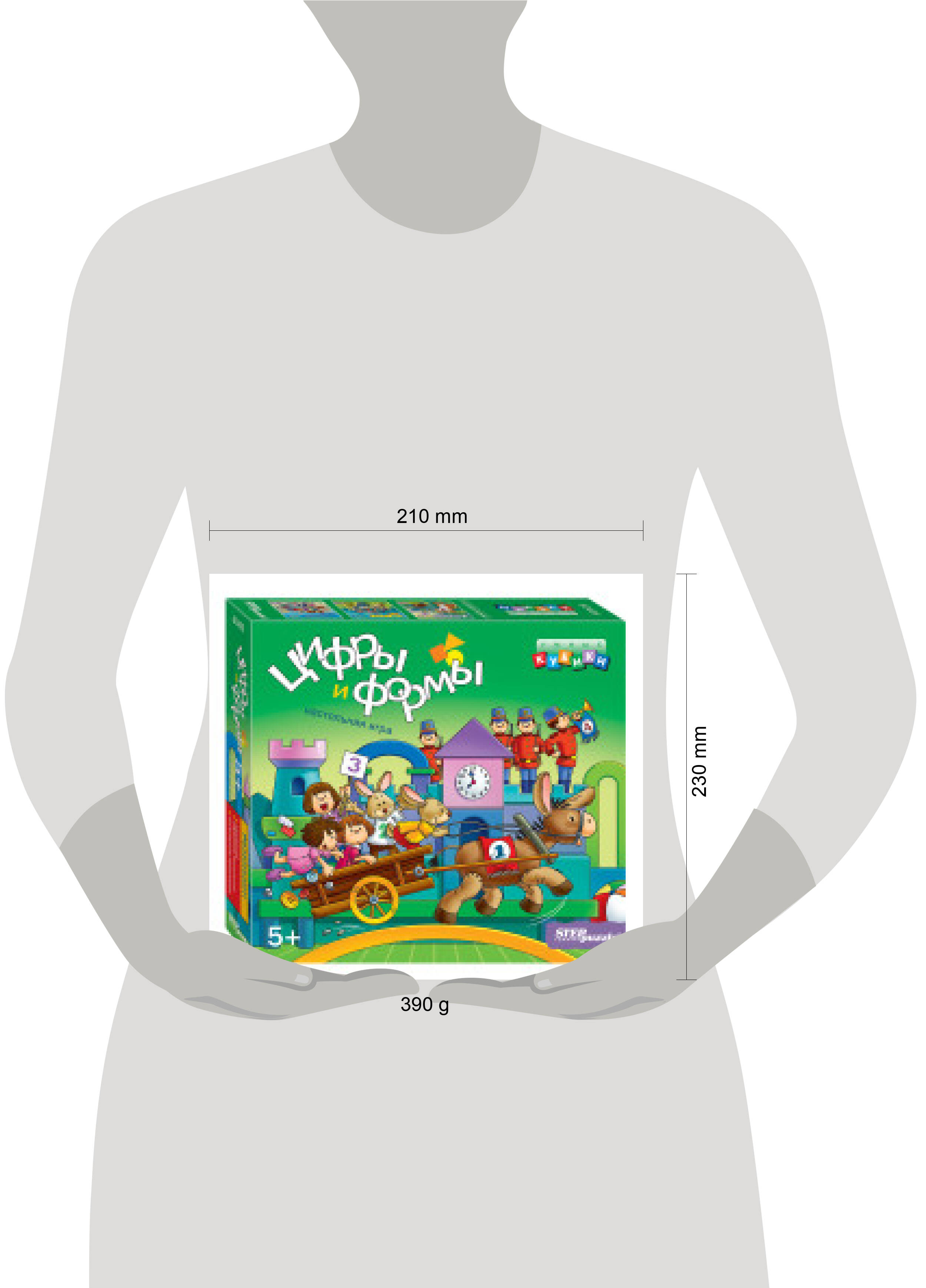 Настольная игра "Цифры и формы" из серии "Умные кубики" способствует развитию у ребенка навыков логического мышления. Также игра развивает усидчивость, моторику, внимание и память. Чтобы в процессе игры не ошибиться, нужно быть очень аккуратным, терпеливым и внимательным. Занятия и игры с использованием "Умных кубиков" постепенно формируют у ребёнка все эти качества. С помощью этой игры вы выучите с ребёнком основные геометрические фигуры, формы и цифры. Основы математики весело и просто! Состав игры: - кубики - 6 шт.; - карточки двусторонние - 6 шт.; - карточки с животными - 36 шт.; - правила игры. Правила игры подробно описаны в инструкции. Суть игры: ребенку необходимо найти на карточке изображение, цифру или контур предмета и сопоставить их с кубиками. Возраст игроков: игра будет интересна детям от 5 лет. Количество игроков: 2-4 игрока. Материал:пластмасса. Бонус: игра "Уши, лапы и хвосты" (36 карточек). Полная игра состоит из 144 карточек (36 различных животных). Эти карточки можно найти в играх "За покупками", "Животные", и "Буквы" серии "Умные кубики". Цель игры - собрать из карточек целое изображение животного. Фактически, в игру "Уши, лапы и хвосты" можно играть сразу, но в одном наборе с кубиками представлены только 9 животных. Всего в четырех наборах 36 зверей. Таким образом, собрав карточки из всех игр, ребенок узнает гораздо больше животных и значительно пополнит свой словарный запас. В серии "Умные кубики" представлены: - Развивающая игра "Буквы" - Развивающая игра "Животные" - Развивающая игра "За покупками" 23 февраля| Издательство | Степ Пазл ЗАО |