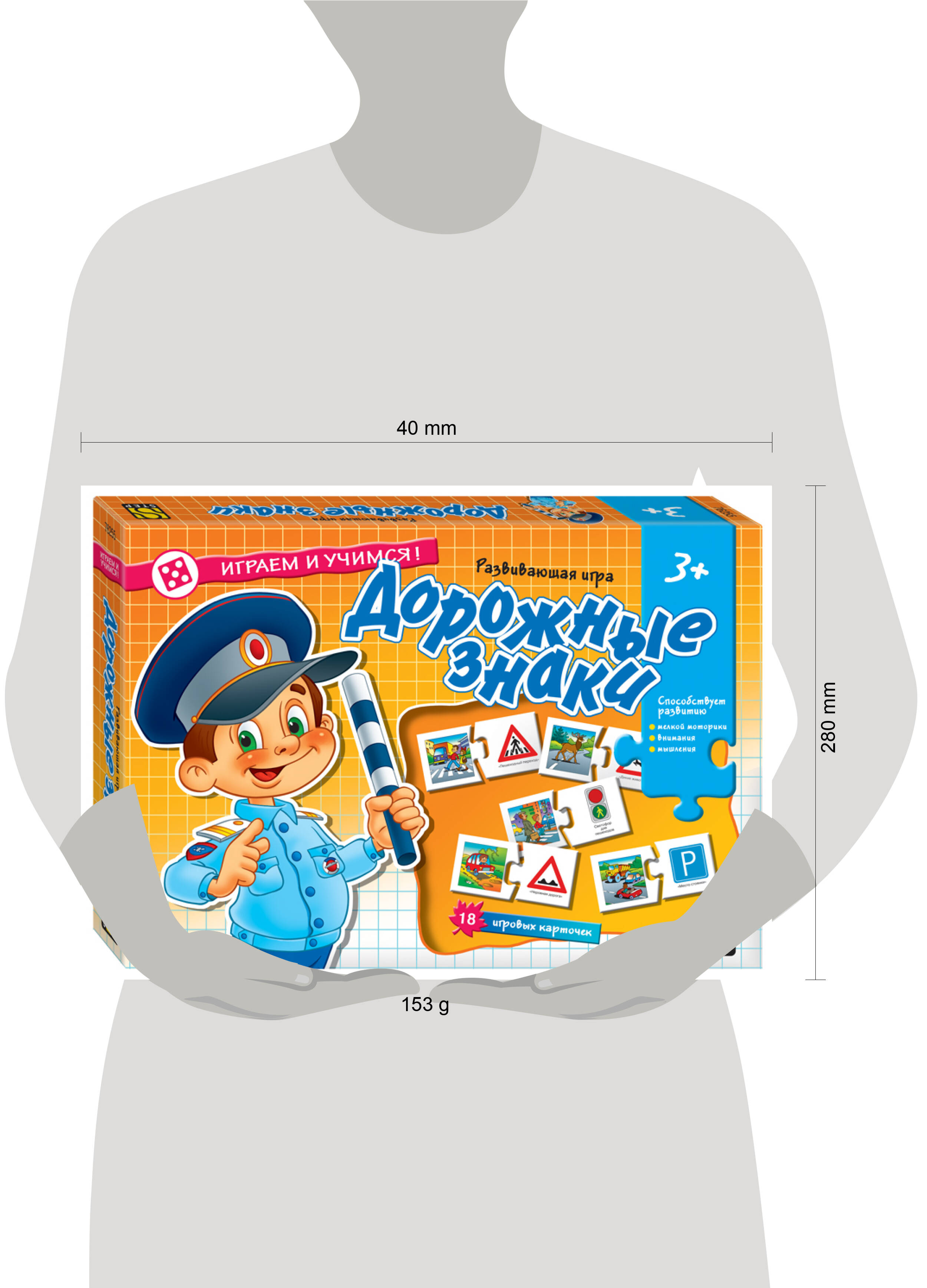 Игра "Дорожные знаки " - развивающая игра для детей дошкольного возраста. В увлекательной форме расскажет ребёнку о дорожных знаках. Средствах регулирования дорожного движения. Опознавательных знаках транспортных средств. В процессе игры у ребенка развиваются внимание, мышление, память, речь, формируется навык безопасного поведения на улице и в транспорте. Что в наборе? карточки, состоящие из двух элементов с пазловым замком - 18 шт.; правила - 1 шт. Как играть? Игра "Знакомимся со знаками" - найти среди имеющихся элементов подходящую половину карточки. Игра "Прятки с дорожными знаками" - найти вторые части своих элементов быстрее всех. Игра "Дорожный турнир" - собрать из половинок наибольшее количество карточек. Возраст игроков. Игра рекомендована детям от 3-х лет. Материал. Высококачественный картон.| Издательство | Степ Пазл ЗАО |