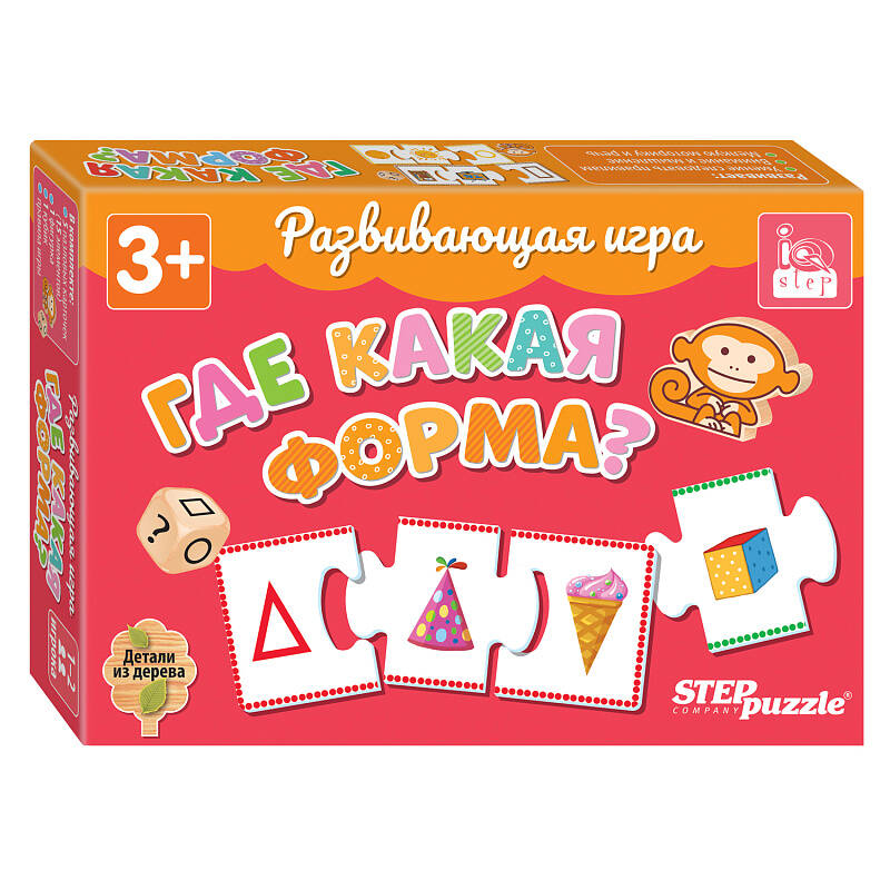 "Где какая форма?" - развивающая игра для детей от 3-х лет. Познакомит с геометрическими формами. Научит классифицировать и объединять предметы по признакам. Игра развивает: мышление; память; внимание; Что в наборе? Пазловые карточки - 5 шт.; игральный кубик - 1 шт; деревянная фишка - 1 шт; правила игры - 1 шт. Цель игры: правильно собрать карточку из 3х пазлов.| Издательство | Степ Пазл ЗАО |