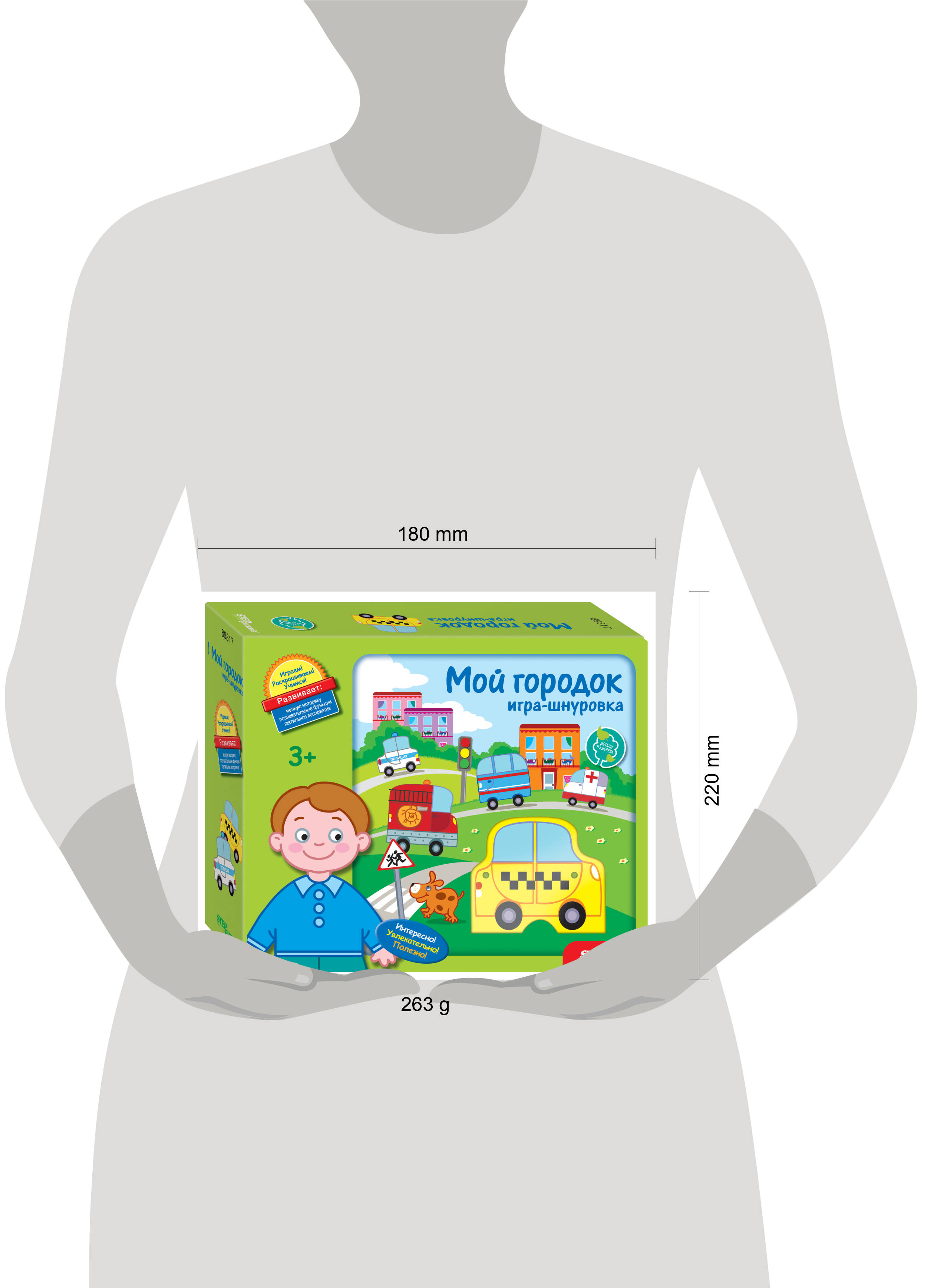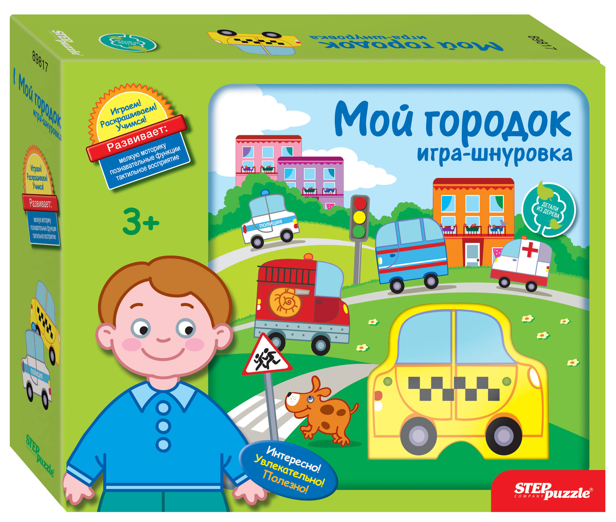 Игра из дерева "Мой городок" - развивающая логическая игра-шнуровка. Она поможет развить мелкую моторику, глазомер и ловкость. Также здесь ребёнок сможет познакомиться со служебным транспортом и разыграть ситуации, которые могут происходить в реальной жизни. Состав игры: - деревянные фигурки - 10 шт.; - шнурок; - раскраска-раскладушка; - мешочек; - правила игры. Как играть? Смысл игры простой - нанизывать на шнурочек фигурки. При этом можно создавать ролевые ситуации и давать ребёнку задания. Например, попросите его собрать на шнурок домик, автобус и человечка - получится ситуация "человек приехал домой на автобусе". Можно попросить собрать все машинки спецслужб и развернуть их в одну сторону, можно потренировать знания элементарных правил дорожного движения. Примеры ситуаций приведены в инструкции, но также вы вправе придумать свои задания. Игра подходит для детей от 3 лет. Материал: дерево, бумага, смесовая ткань. Порадуйте ребенка игрой из дерева "Мой городок" - это полезно и интересно.| Издательство | Степ Пазл ЗАО |